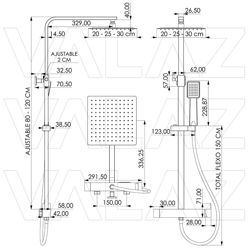 Tamaños de rociador disponibles: 20, 25 y 30 cm