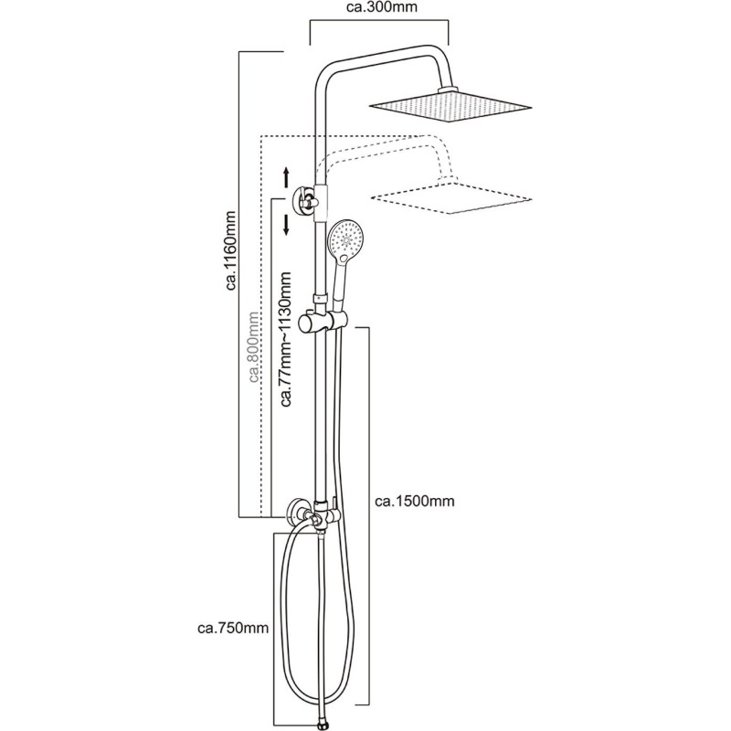 Brazo del rociador: 350 mm