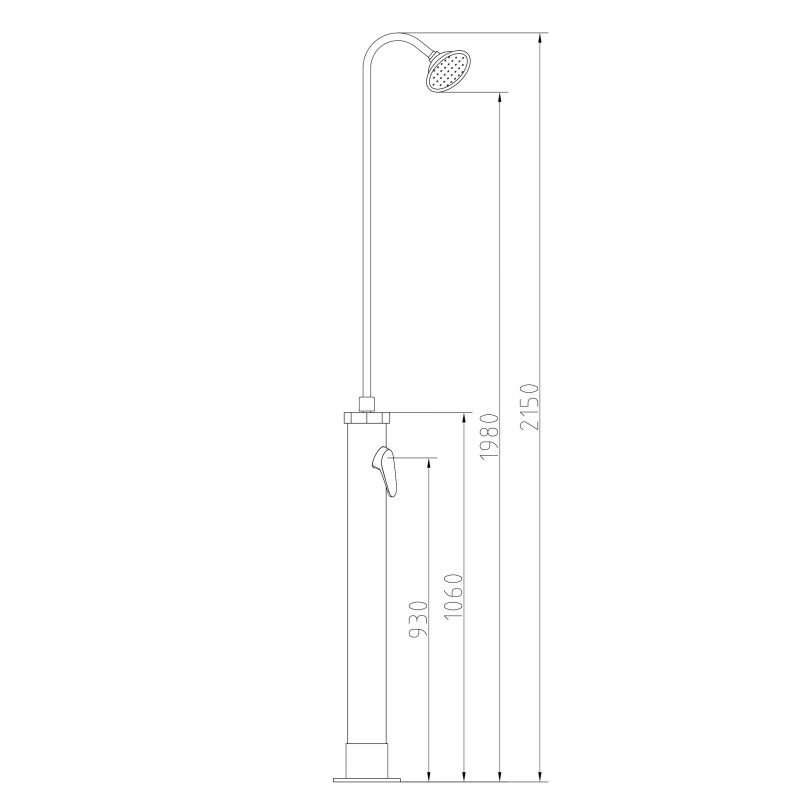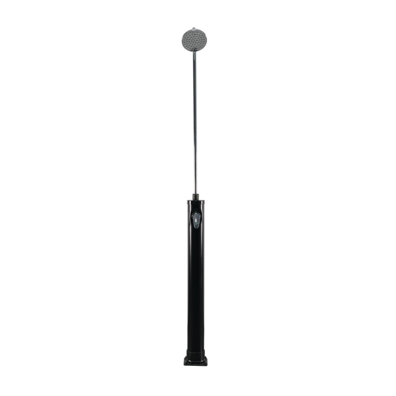 Material: Cilindro negro de PVC, tubo cromado y cabezal de ducha de PVC