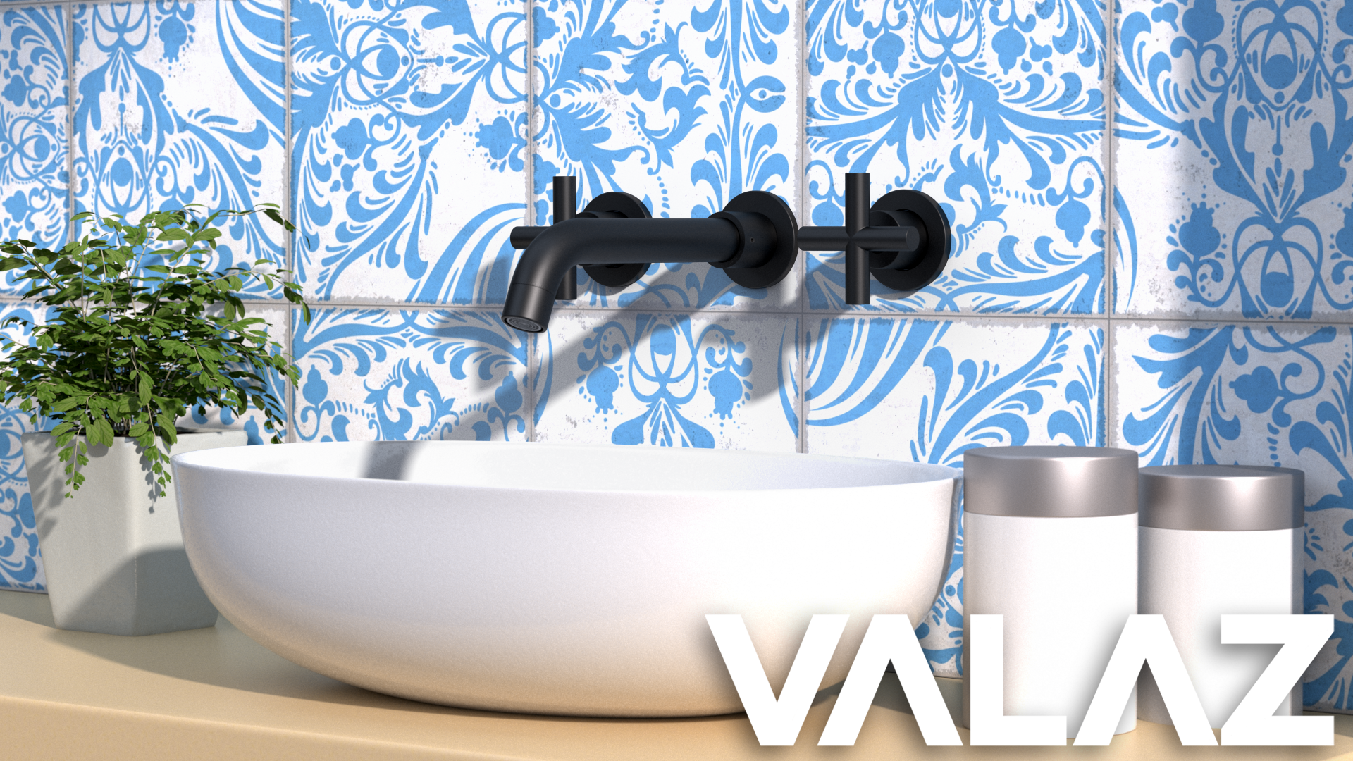 Grifo de lavabo empotrado redondo bimando negro mate con cańo de 21CM - Serie Nalon