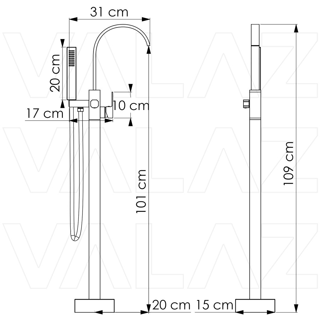 Tipo: Grifo de bañera exenta cuadrado
