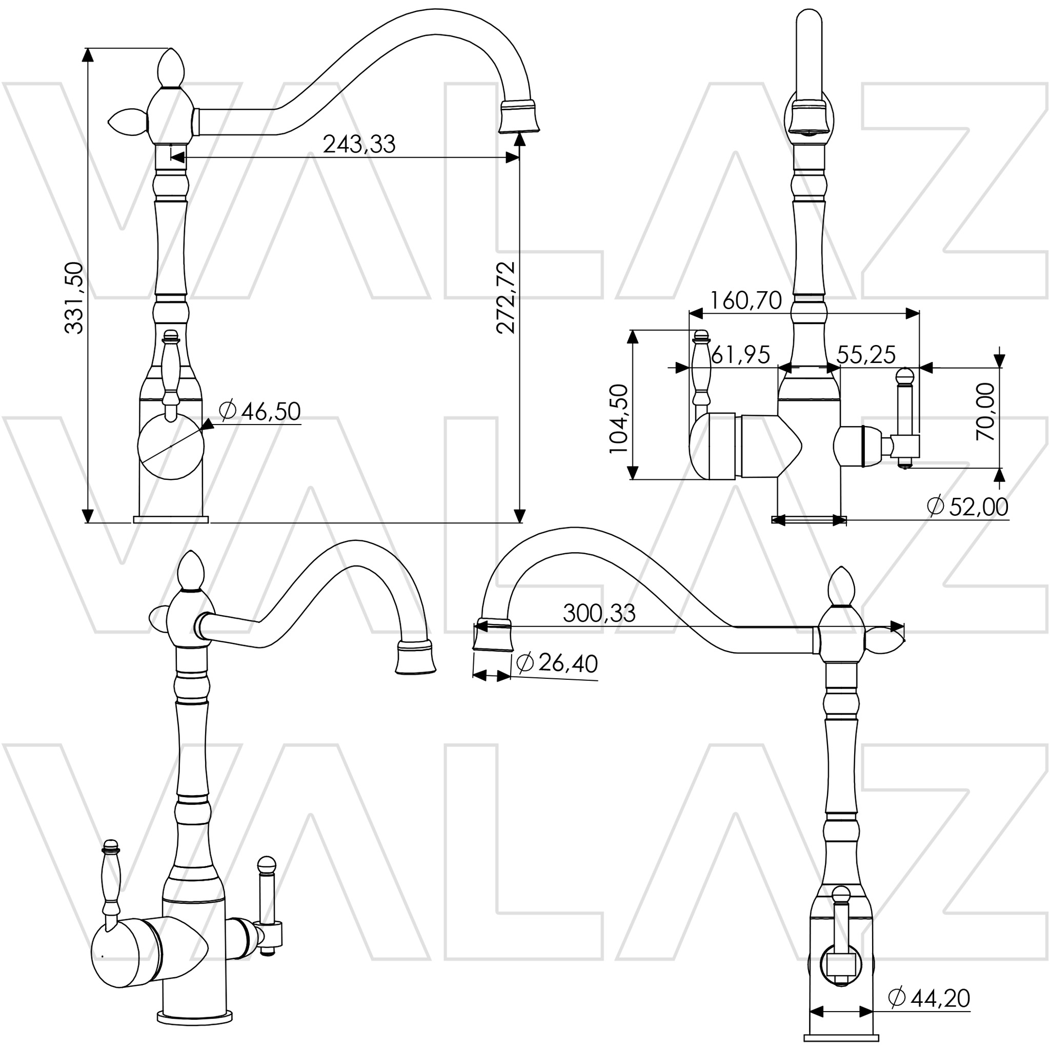 Grifo de cocina osmosis 3 vías diseño vintage cromado Orinoco