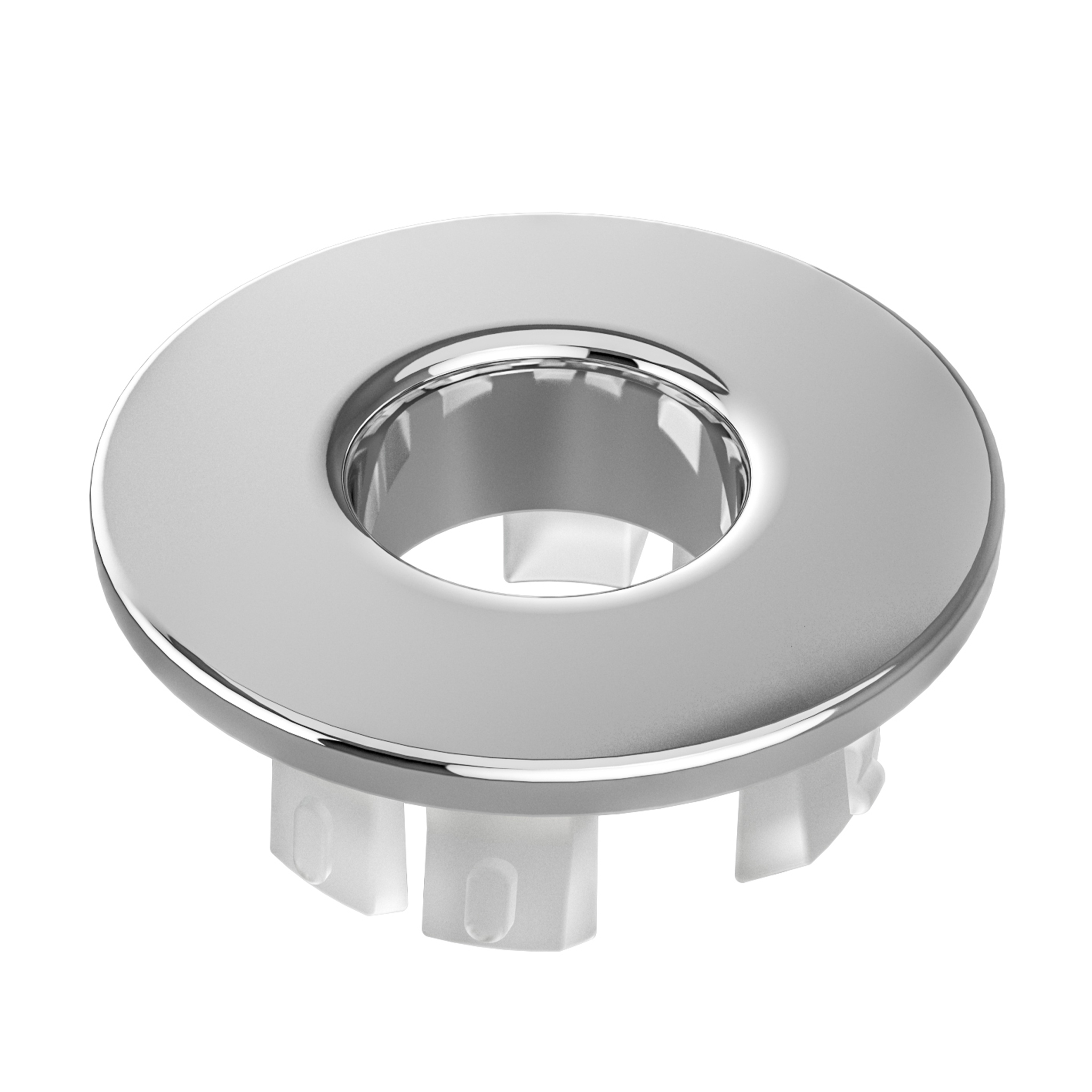 Embellecedor resistente con acabado cromado brillante, ideal para dar un toque elegante y limpio al lavabo. Fácil instalación y ajuste perfecto. Especificaciones: Material: Metal Acabado: Cromo Uso: Rebosadero de lavabo