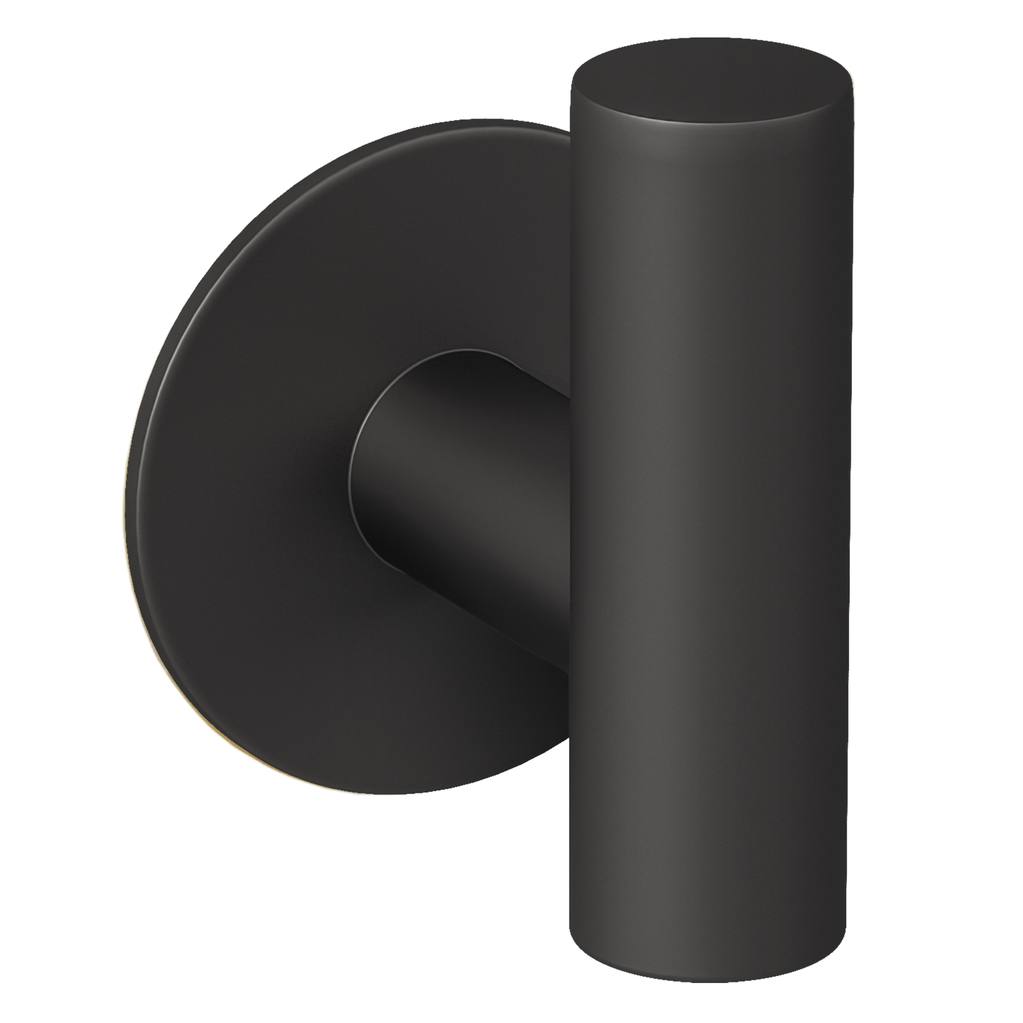 Percha de diseño moderno con acabado negro mate. Instalación adhesiva sin taladro, ideal para superficies lisas. Especificaciones: Material: Metal/Acero inoxidable Diseño: Redondo Acabado: Negro mate Instalación: Adhesiva, sin perforación