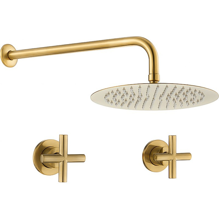Ducha empotrada bimando redonda de 1 salida/vía oro mate con protección PVD - Serie Nalón - 25cm