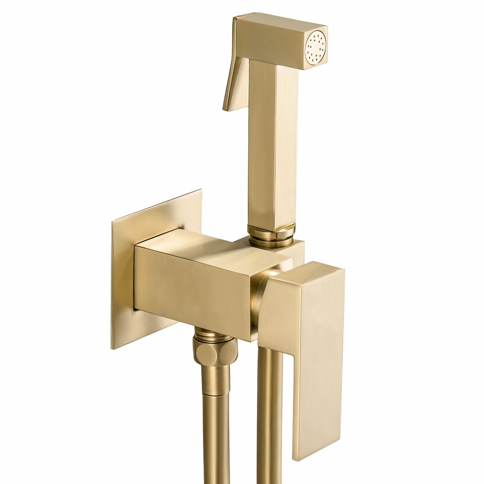 Grifo de bidet empotrado cuadrado oro mate con protección PVD - Serie Tajo