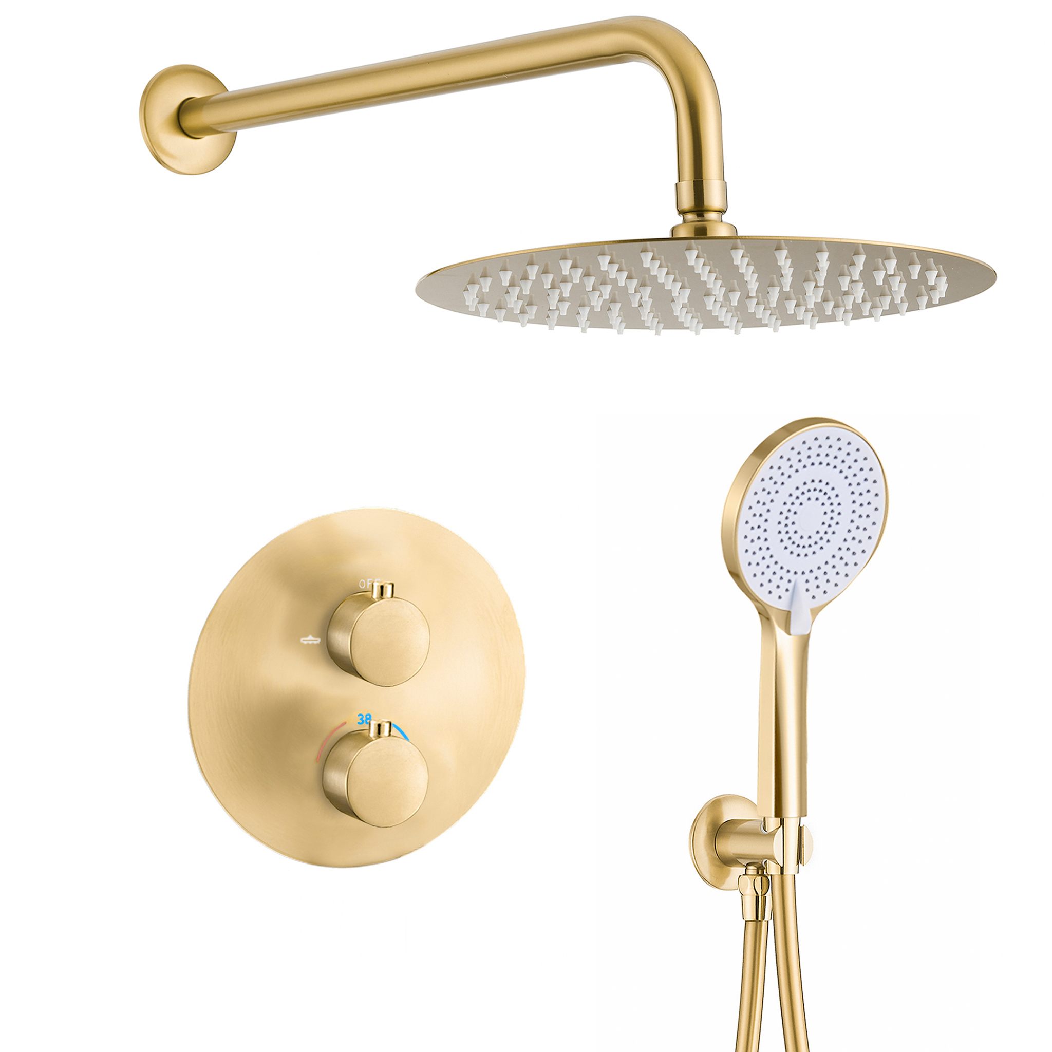 Ducha empotrada termostática pared redonda oro mate con protección PVD - Serie Cabriel - 20cm