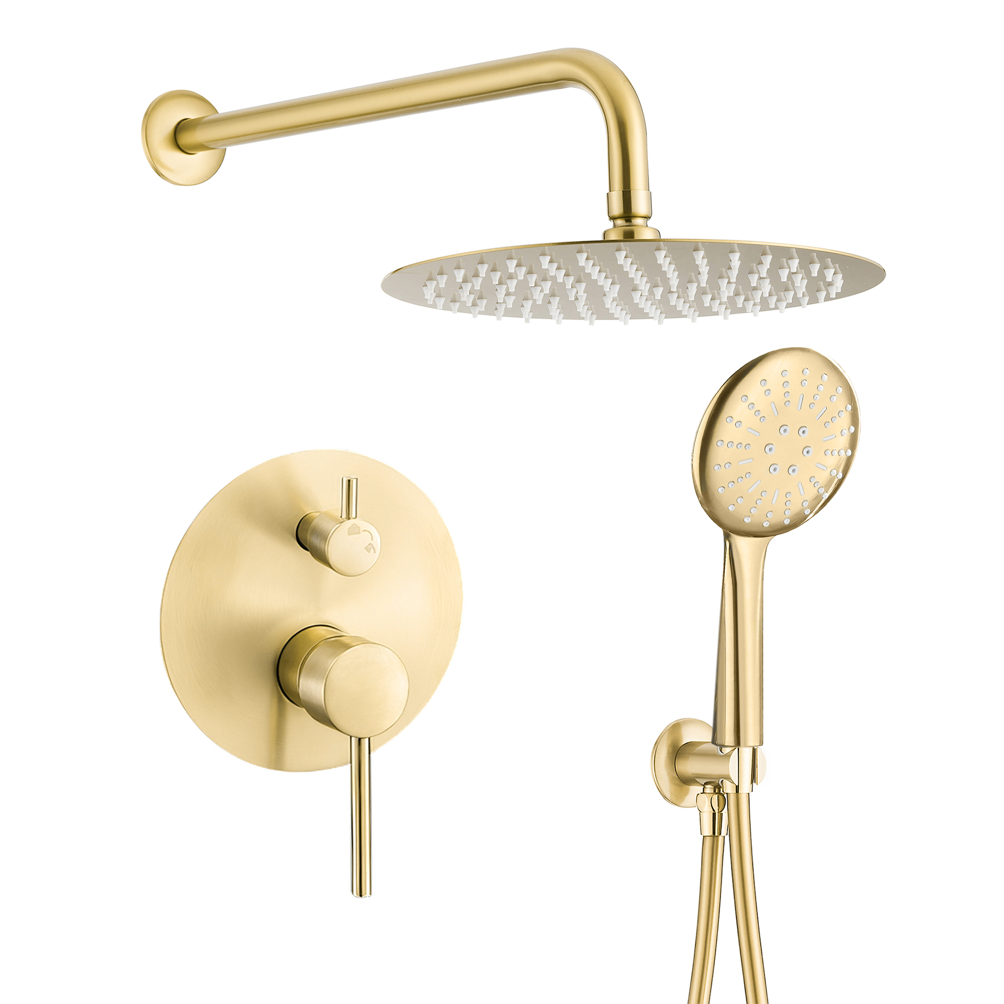 Ducha empotrada monomando pared redonda dorado cepillado con maneta ancha - Serie Cabriel - 20cm