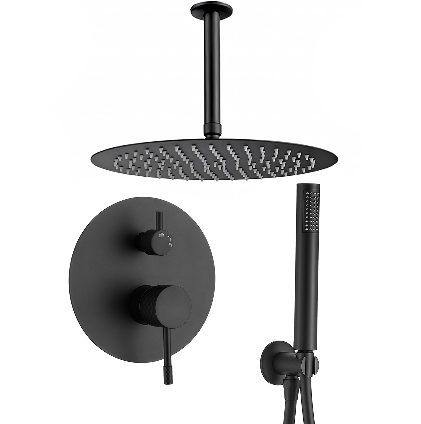 Ducha empotrada monomando techo redonda acabado maneta luxury negro mate - Serie Ofin - 25cm