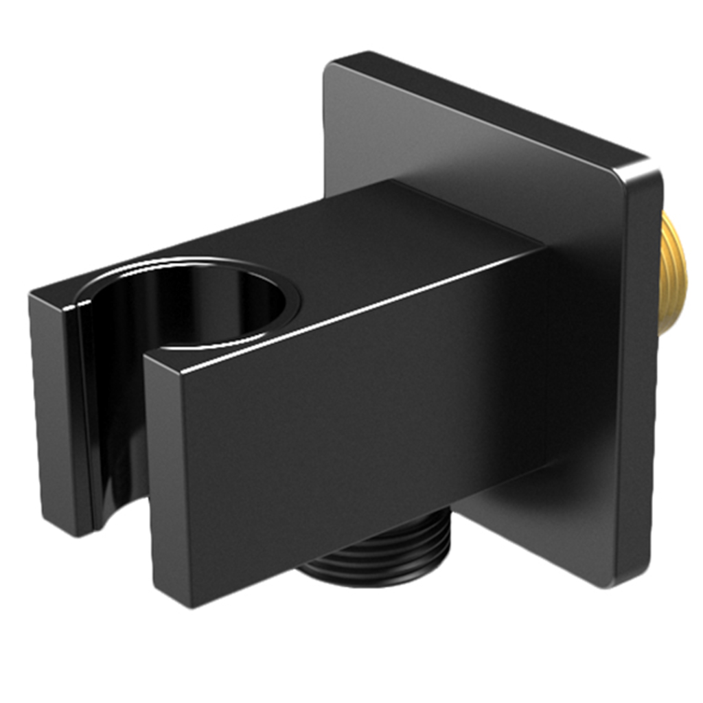 Soporte de diseño cuadrado en negro mate con función para un ajuste óptimo de la alcachofa de mano.