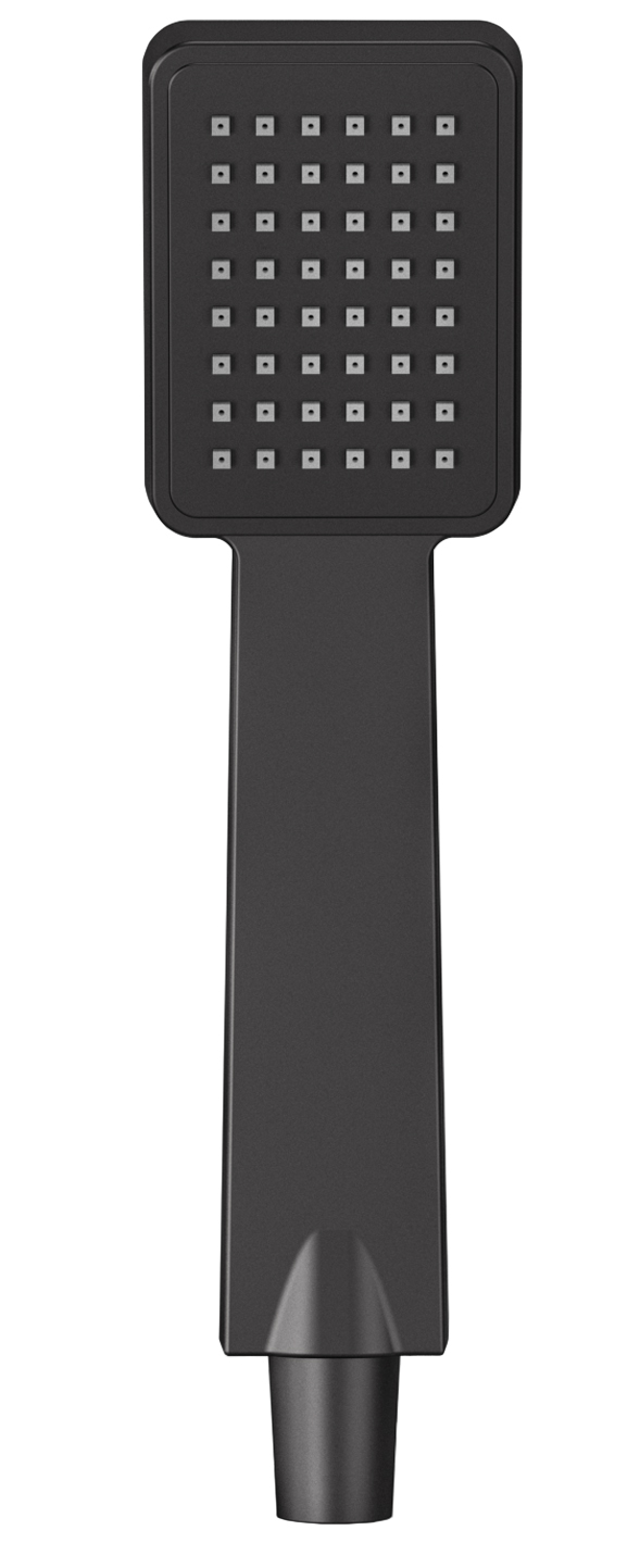 Alcachofa de mano de diseño cuadrado y amplio con acabado negro mate, ideal para un rociado uniforme y elegante, perfecta para baños modernos.