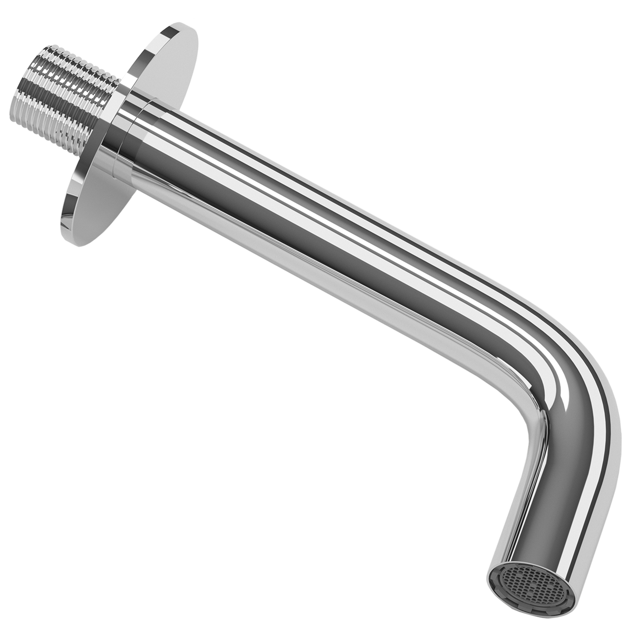 Caño redondo empotrado de 15 cm de largo, con acabado cromado, ideal para un lavabo moderno y elegante.