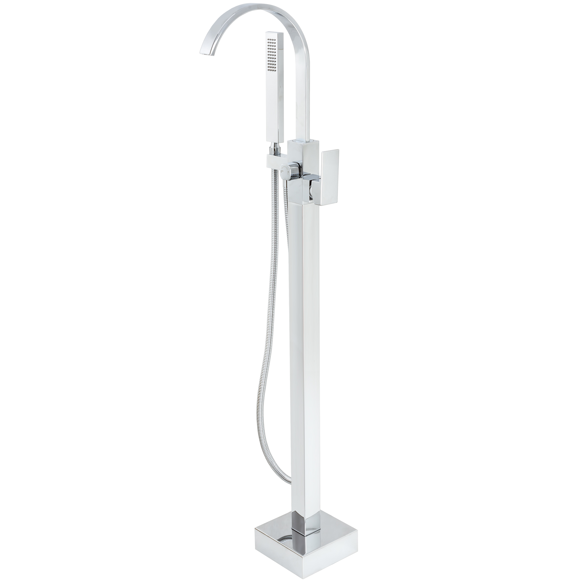 Grifo de bañera de pie cuadrado con salida en cascada en acabado cromado, ideal para dar un toque moderno a tu baño.