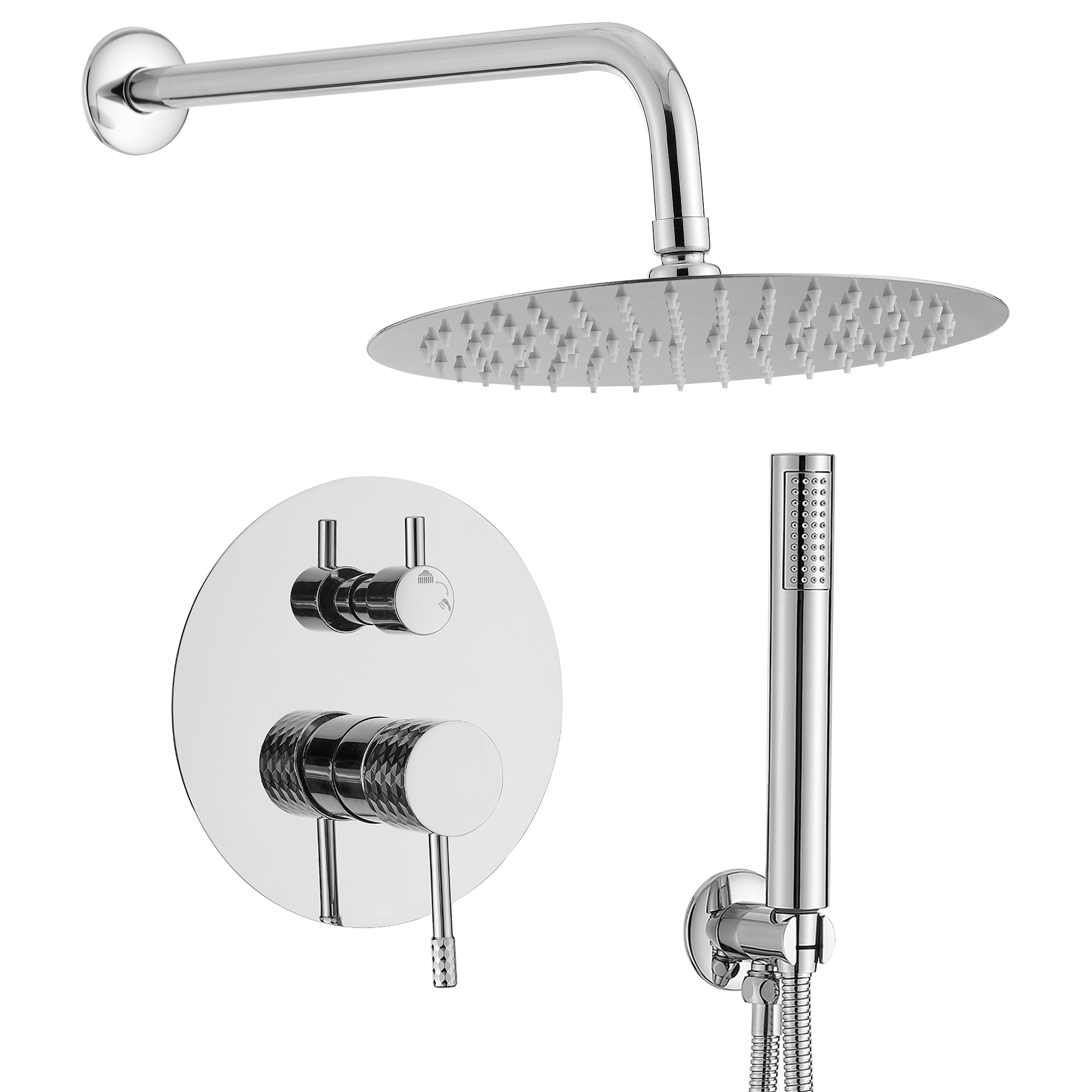 Ducha empotrada monomando redonda acabado maneta luxury cromado a pared - Serie Ofin - 20cm