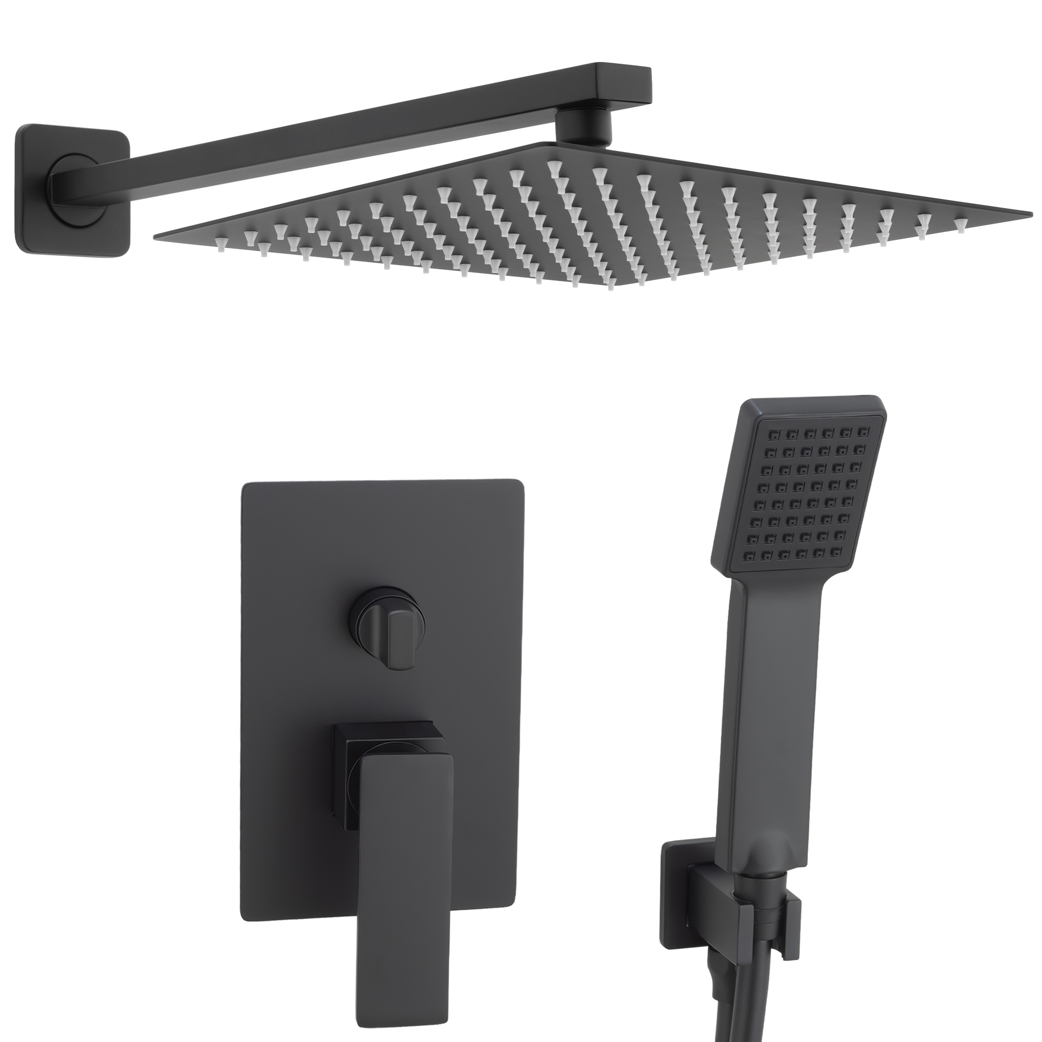 Ducha empotrada monomando a pared cuadrada negro mate - Serie Limia - 40cm