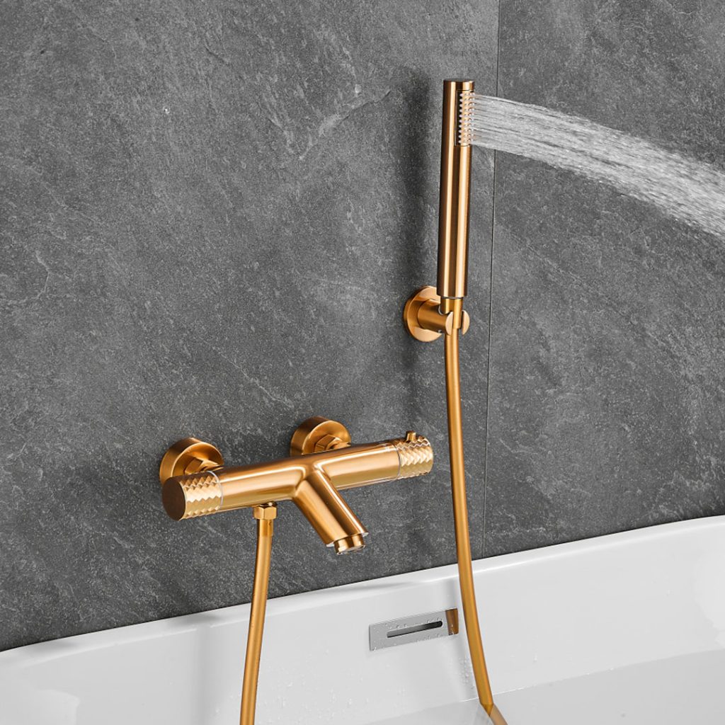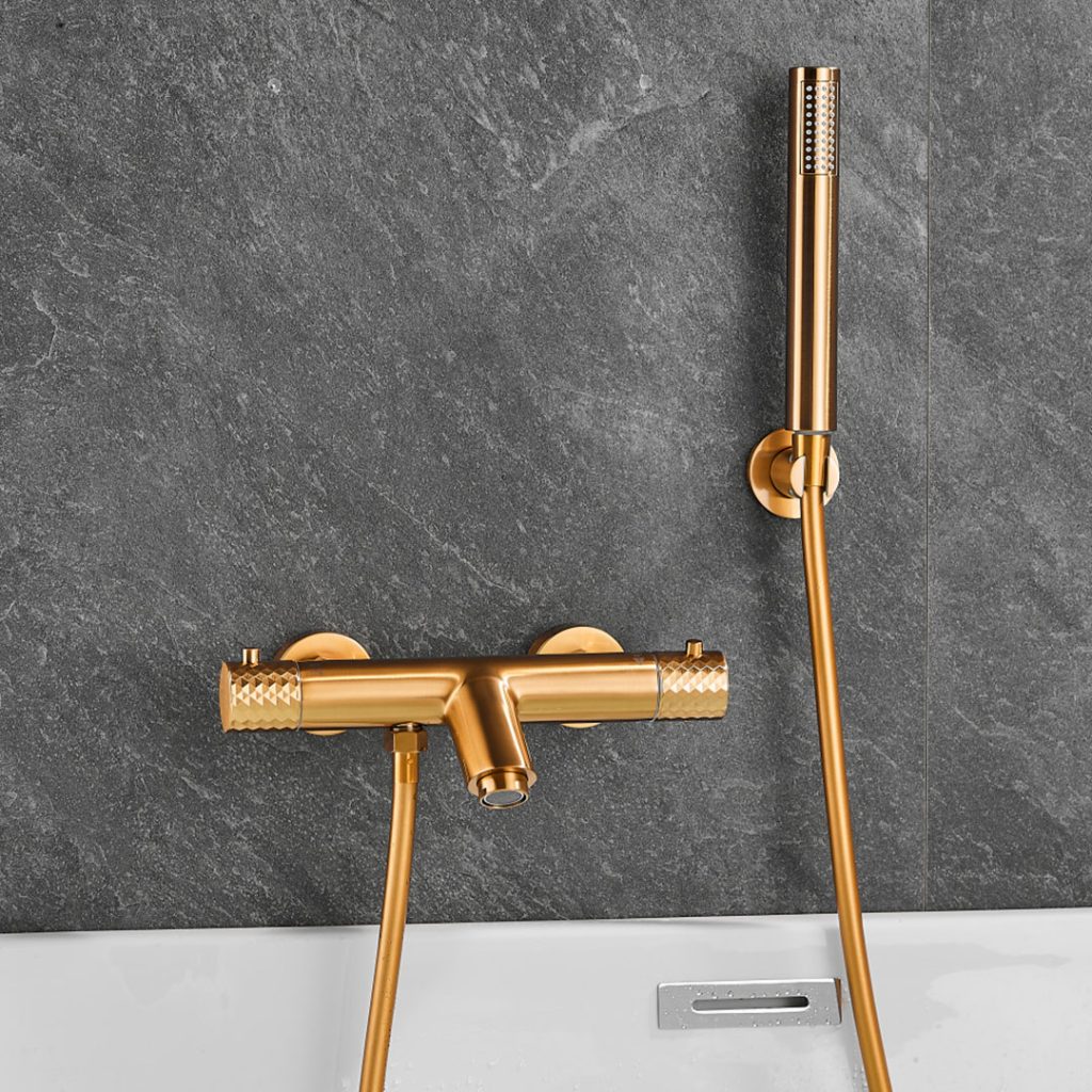 Grifo de ducha/bañera termostático dorado cepillado maneta luxury - Serie Birim