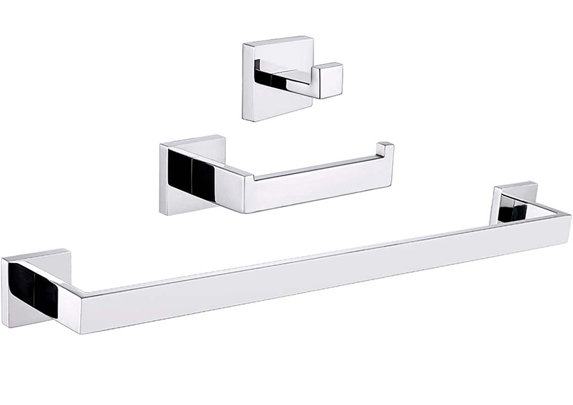 Este set de accesorios de bańo cuadrados en cromo combina estilo y funcionalidad para crear un ambiente moderno y sofisticado en tu bańo. El acabado cromado aporta un brillo duradero y una estética pulida, mientras que el diseńo cuadrado y contemporáneo de cada pieza hace que estos accesorios se adapten perfectamente a cualquier bańo de diseńo actual. El set incluye un toallero, una percha y un portarollos, elementos esenciales para un bańo bien organizado y elegante.
