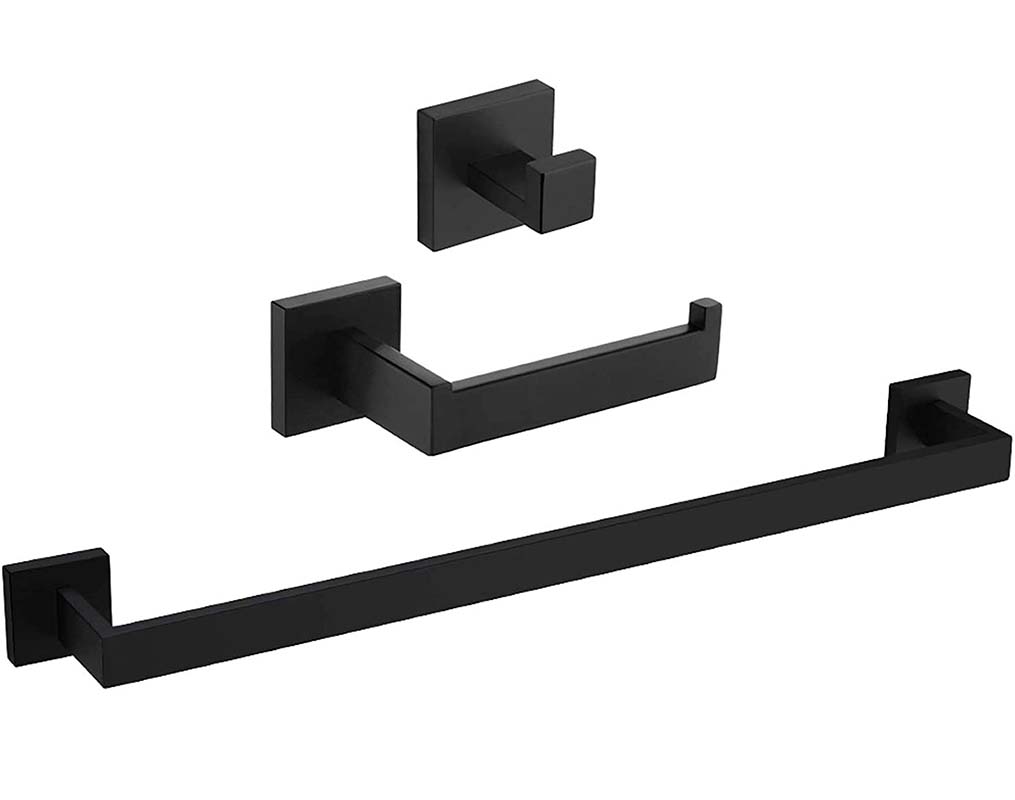 El conjunto incluye un toallero, un portarollos y una percha, todos fabricados en acero inoxidable SUS304, un material resistente a la humedad, la corrosión y el uso diario. Gracias a su forma cuadrada, estos accesorios se integran perfectamente en ambientes contemporáneos y aportan un aire sofisticado al espacio del bańo.