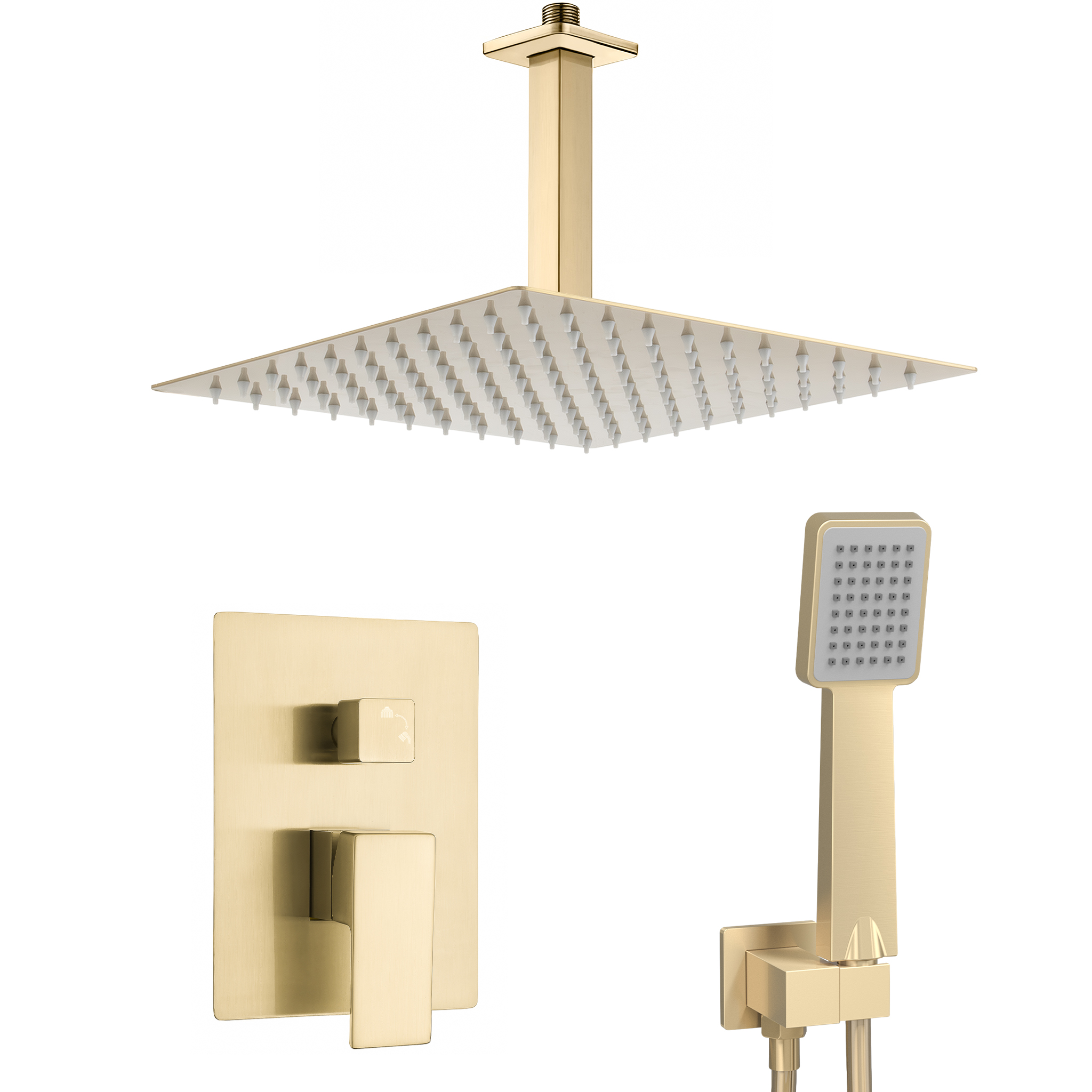 Ducha empotrada monomando a techo cuadrada dorado cepillado - Serie Eresma - 20cm