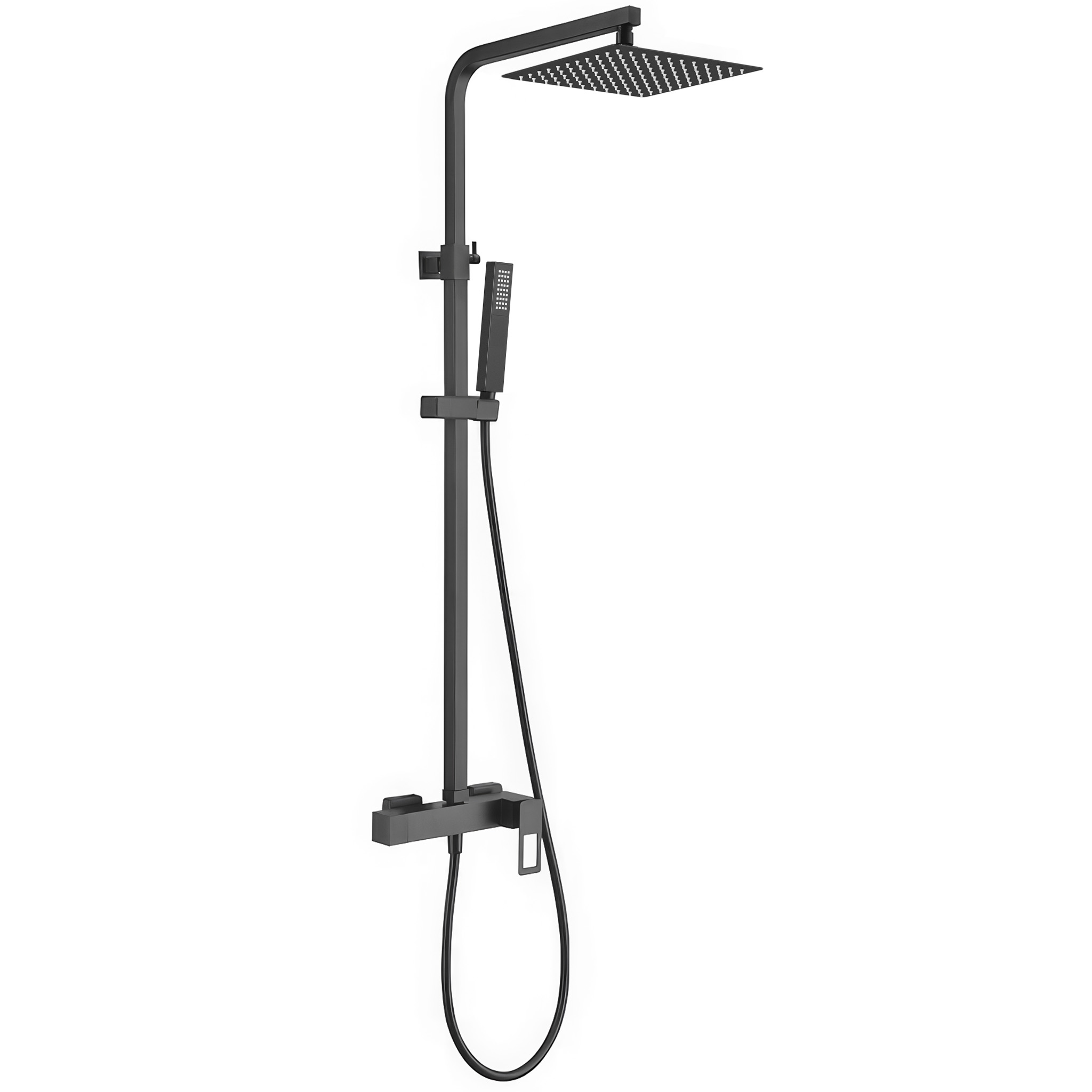 Barra de ducha monomando cuadrada ajustable hasta 120CM con maneta hueca negro mate - Serie Cabrera - 25cm