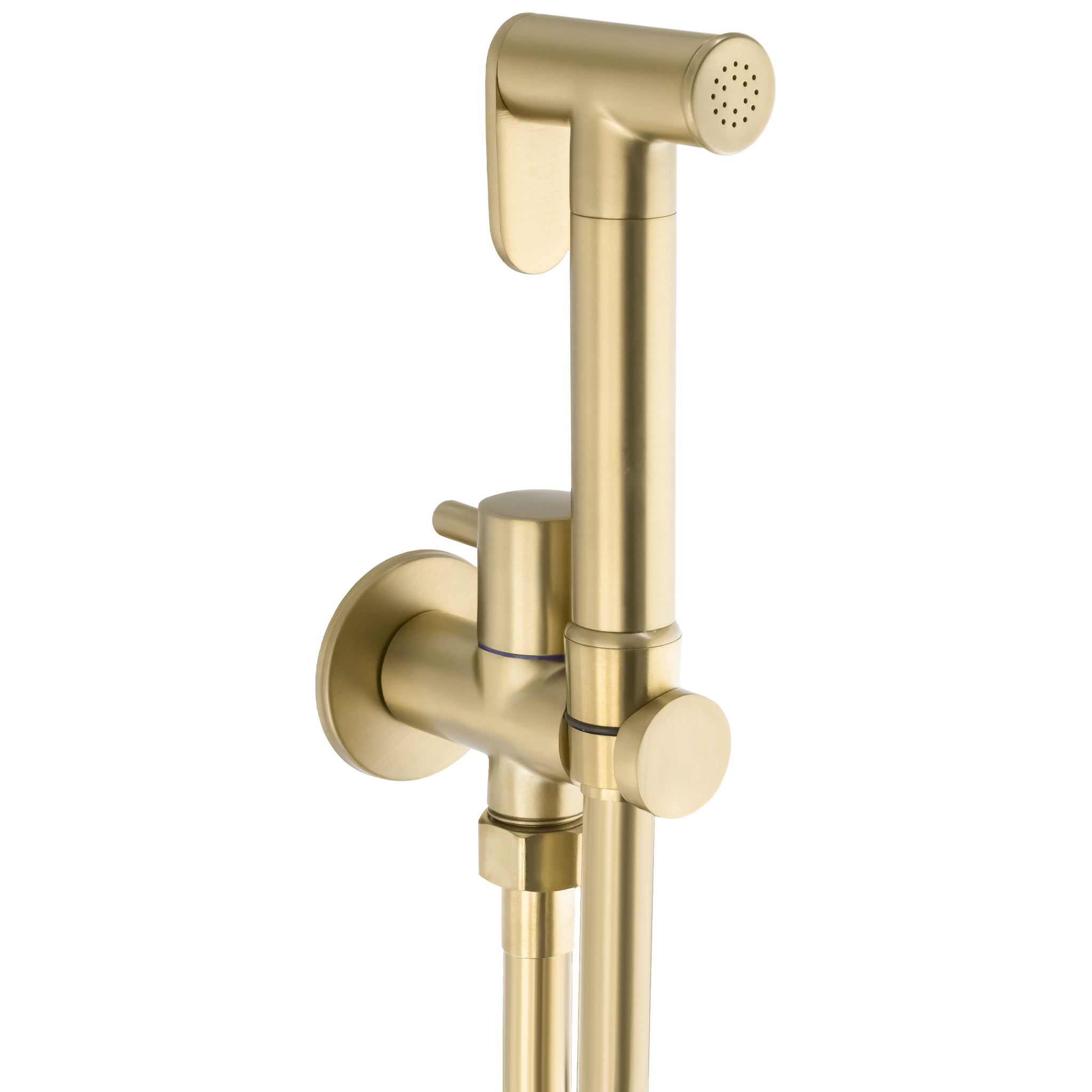 Grifo de bidet empotrado con diseńo redondo y acabado dorado cepillado, perfecto para ańadir estilo y funcionalidad al bańo.