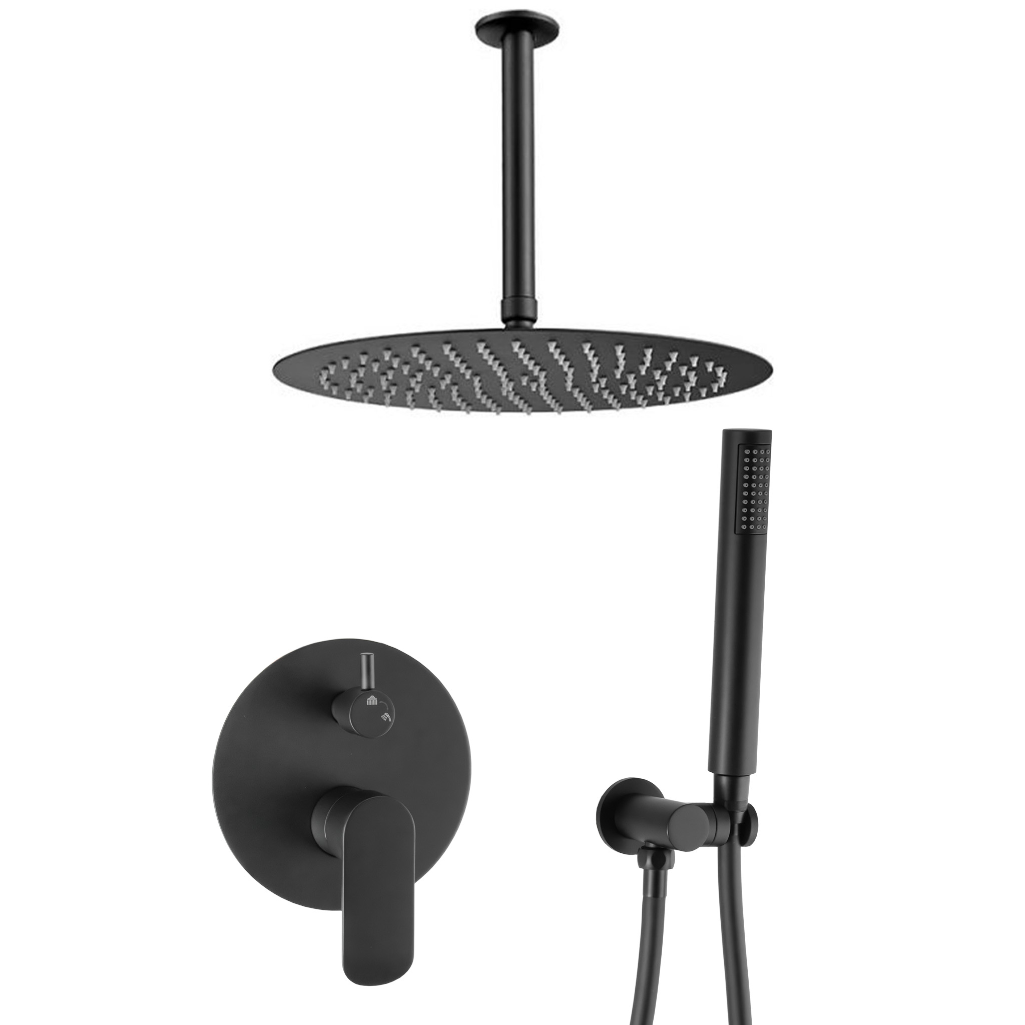 Ducha empotrada monomando a techo redonda negro mate - Serie Tuejar - 20cm