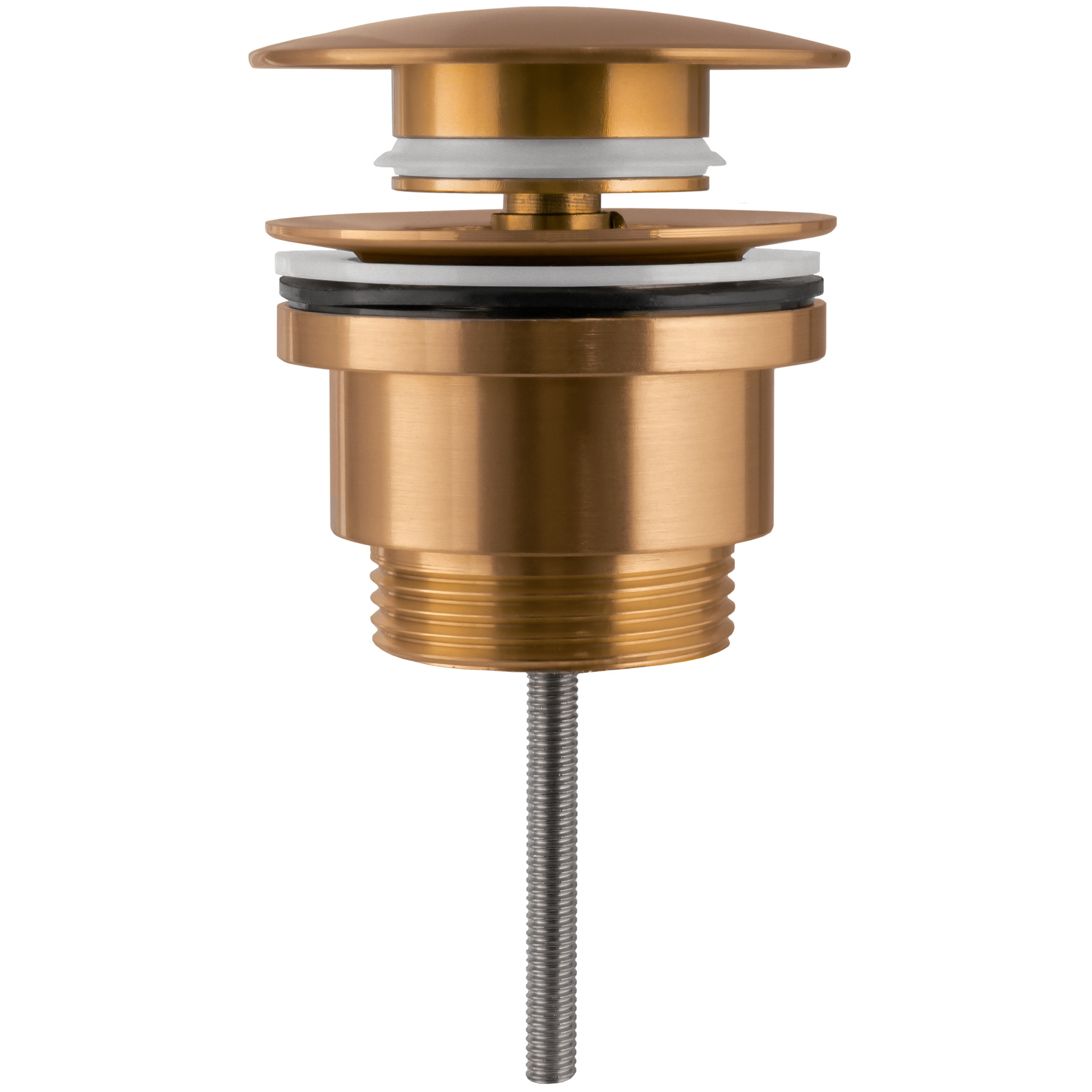 Esta válvula click clack redonda en oro claro rosa cepillado es compatible con todo tipo de lavabos y bidés, tanto con como sin rebosadero. Su diseńo elegante y discreto la convierte en el complemento ideal para lavabos modernos. El sistema de apertura y cierre está diseńado para ofrecer una larga durabilidad, garantizando hasta 20.000 usos sin perder eficacia.