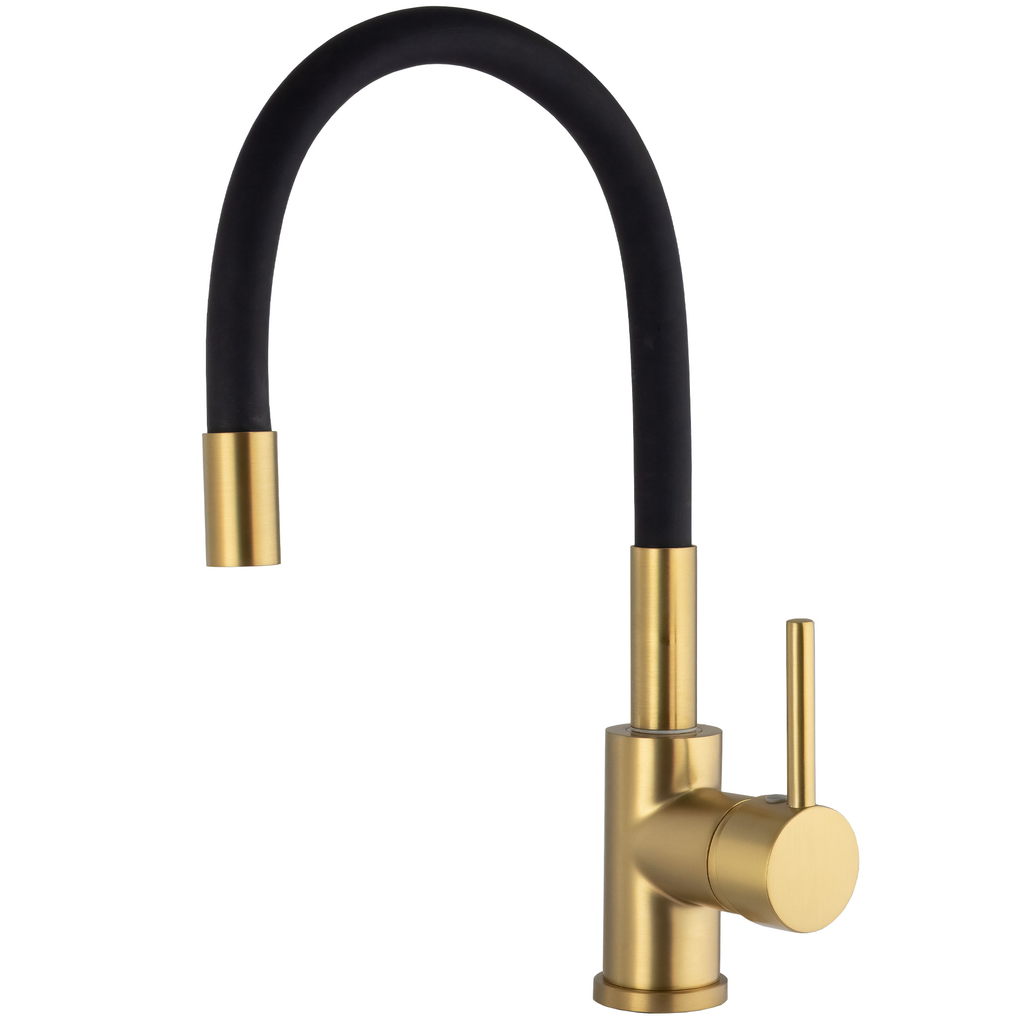 Este grifo de cocina flexible de la Serie Gaya, con acabado oro mate y flexo negro, ofrece una excelente combinación de estilo y funcionalidad. Su protección PVD garantiza mayor durabilidad, mientras que su cańo giratorio de 360 grados facilita el uso diario en la cocina.