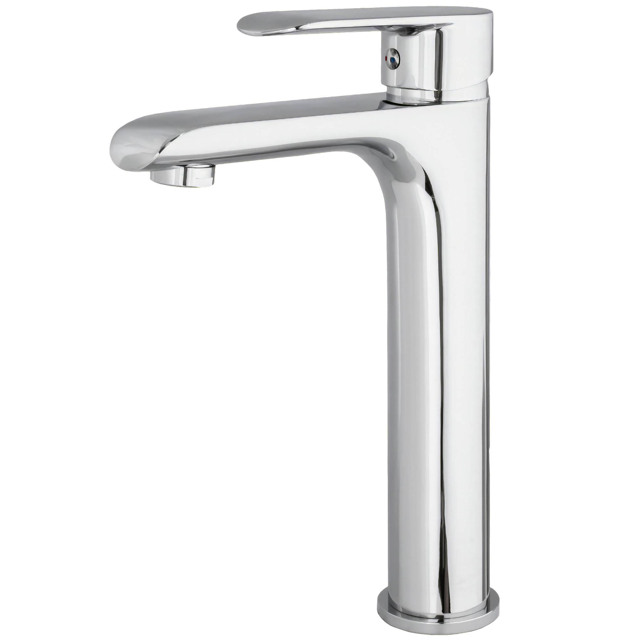 Este grifo monomando para lavabo alto ofrece un diseńo redondo y elegante en acabado cromado, ideal para instalar en picas de lavabo con un estilo moderno y funcional.