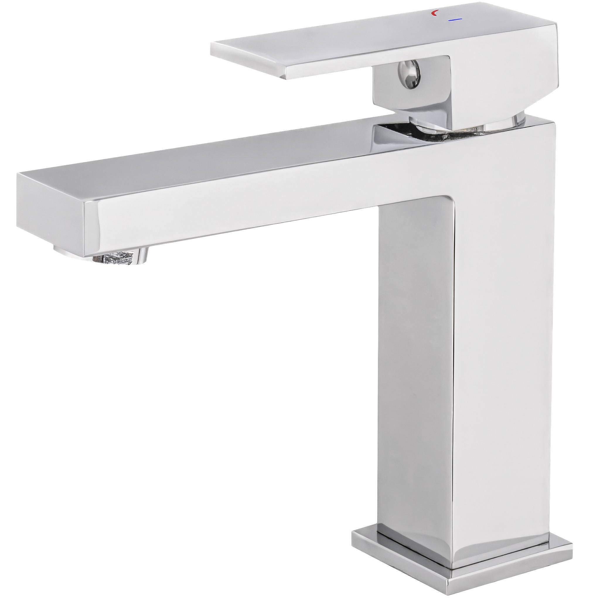 Este grifo de lavabo cuadrado y monomando está diseńado para ofrecer un control sencillo de la apertura en agua fría, con un acabado cromado que aporta durabilidad y elegancia.