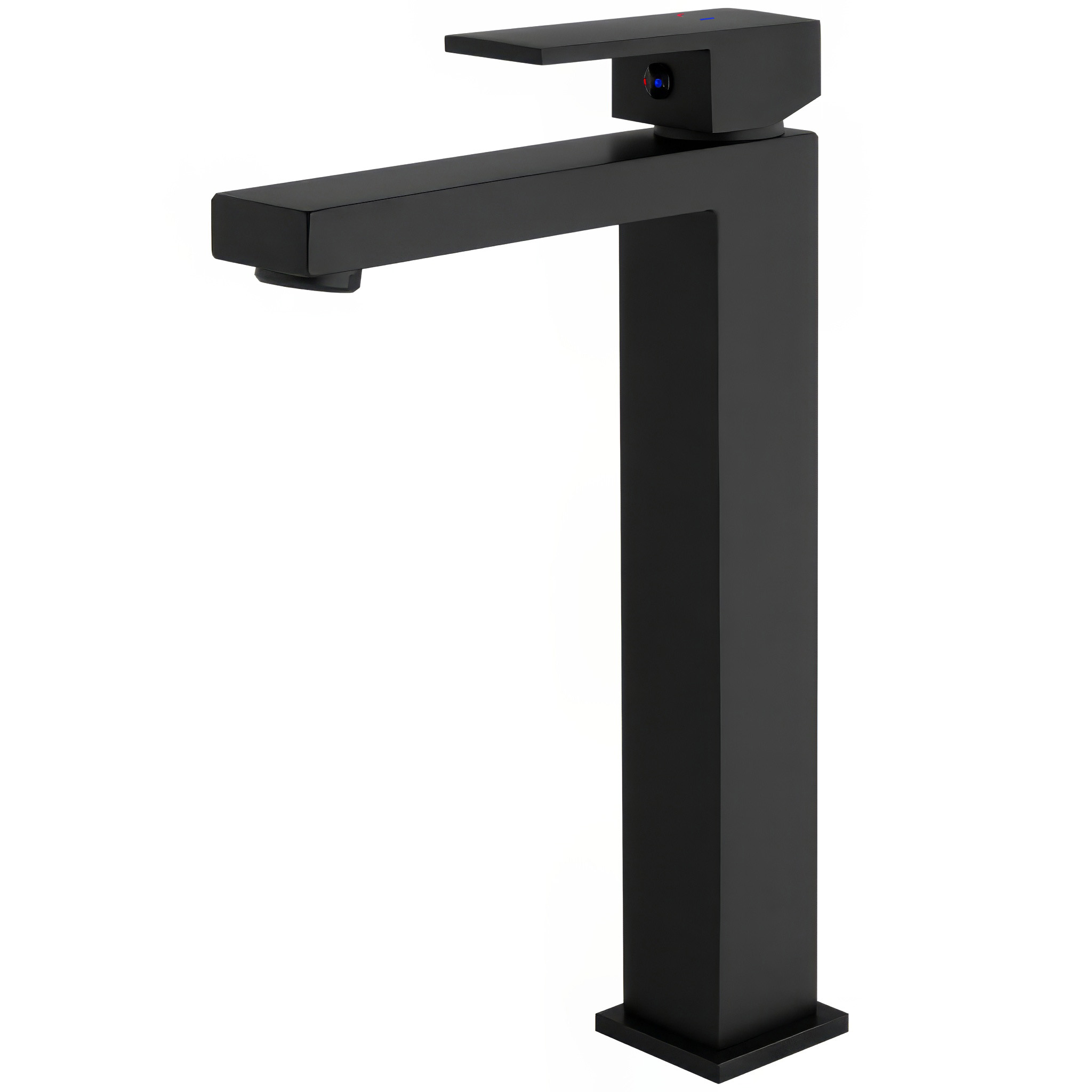 Este grifo de lavabo alto para pica con apertura en agua fría y diseńo cuadrado en negro mate aporta elegancia y funcionalidad a tu bańo, adaptándose a los espacios modernos y minimalistas.