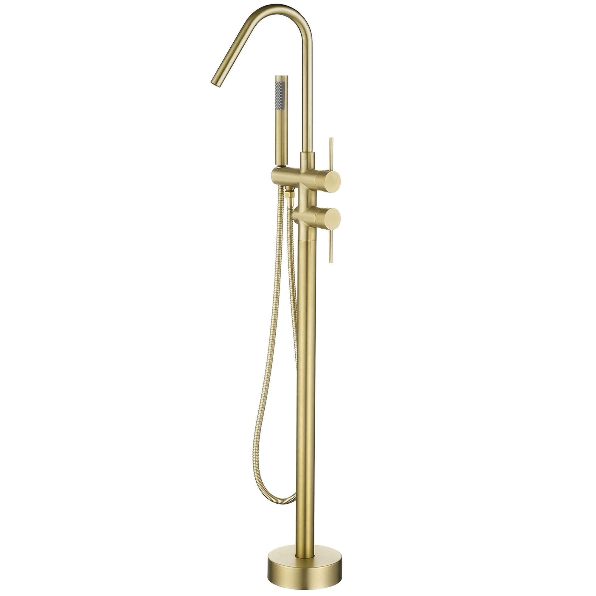 Este impresionante grifo para bańera exenta combina un diseńo redondo de estilo cascada con un acabado en oro mate, protegido por PVD. Perfecto para ańadir un toque de elegancia a tu bańo, su estructura de latón y su cartucho cerámico aseguran durabilidad y un rendimiento superior.