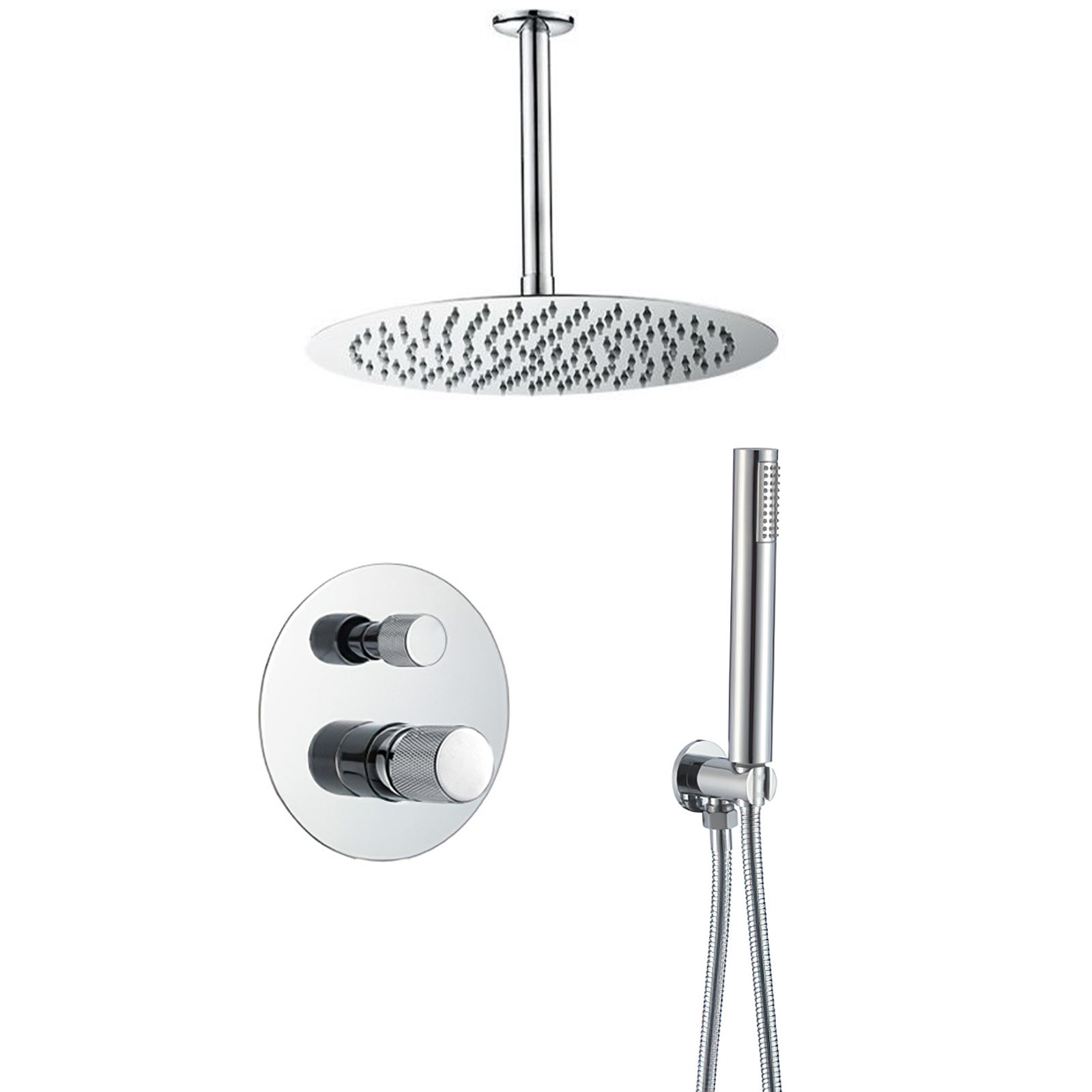 Esta ducha empotrada de diseńo elegante y acabado cromado ofrece una experiencia de bańo moderna y lujosa. El rociador de techo y la alcachofa de mano brindan dos funciones para disfrutar de una ducha completa, mientras que el monomando facilita un control fácil y preciso del agua.