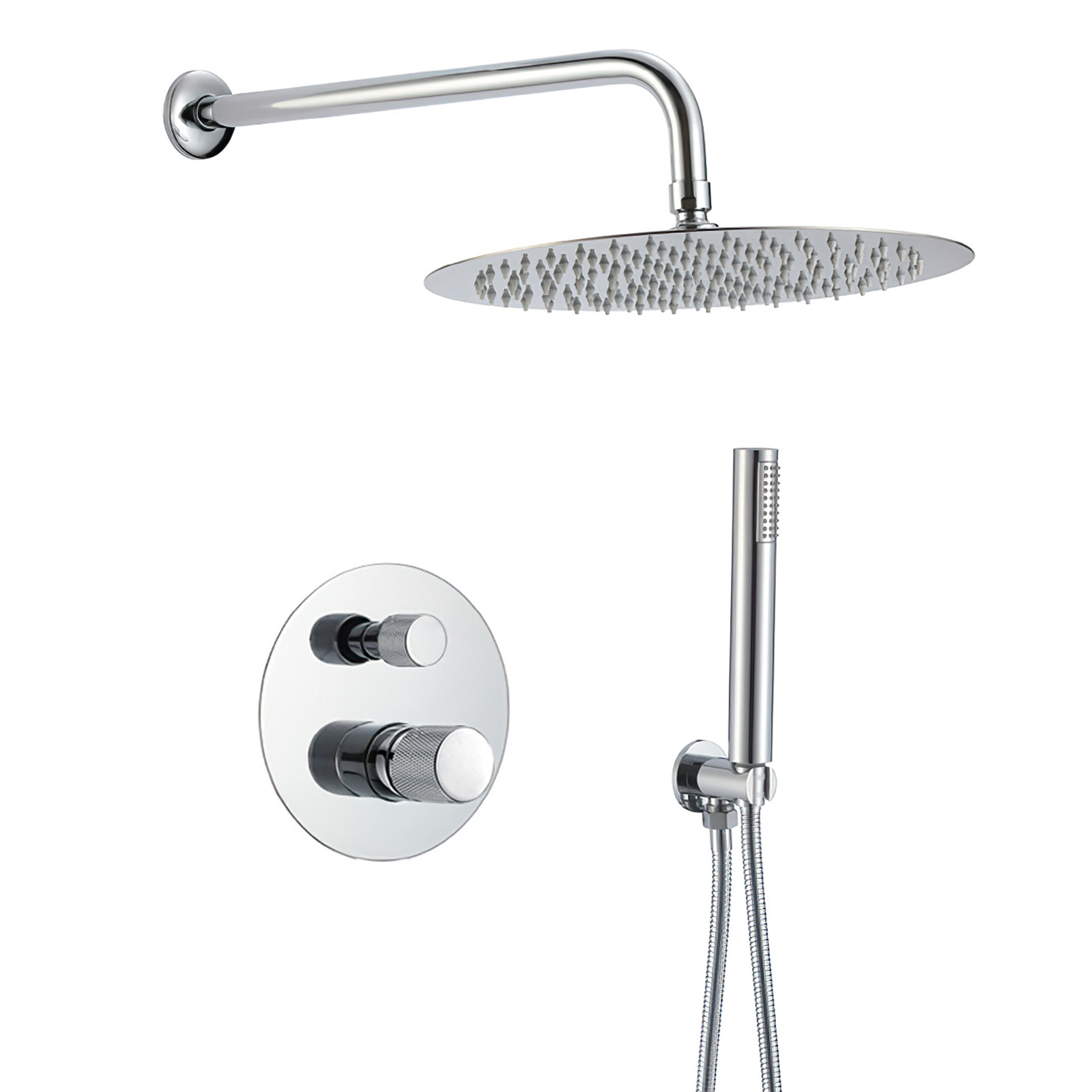 Ducha empotrada monomando pared redonda maneta luxury cromada - Serie Besaya - 25cm