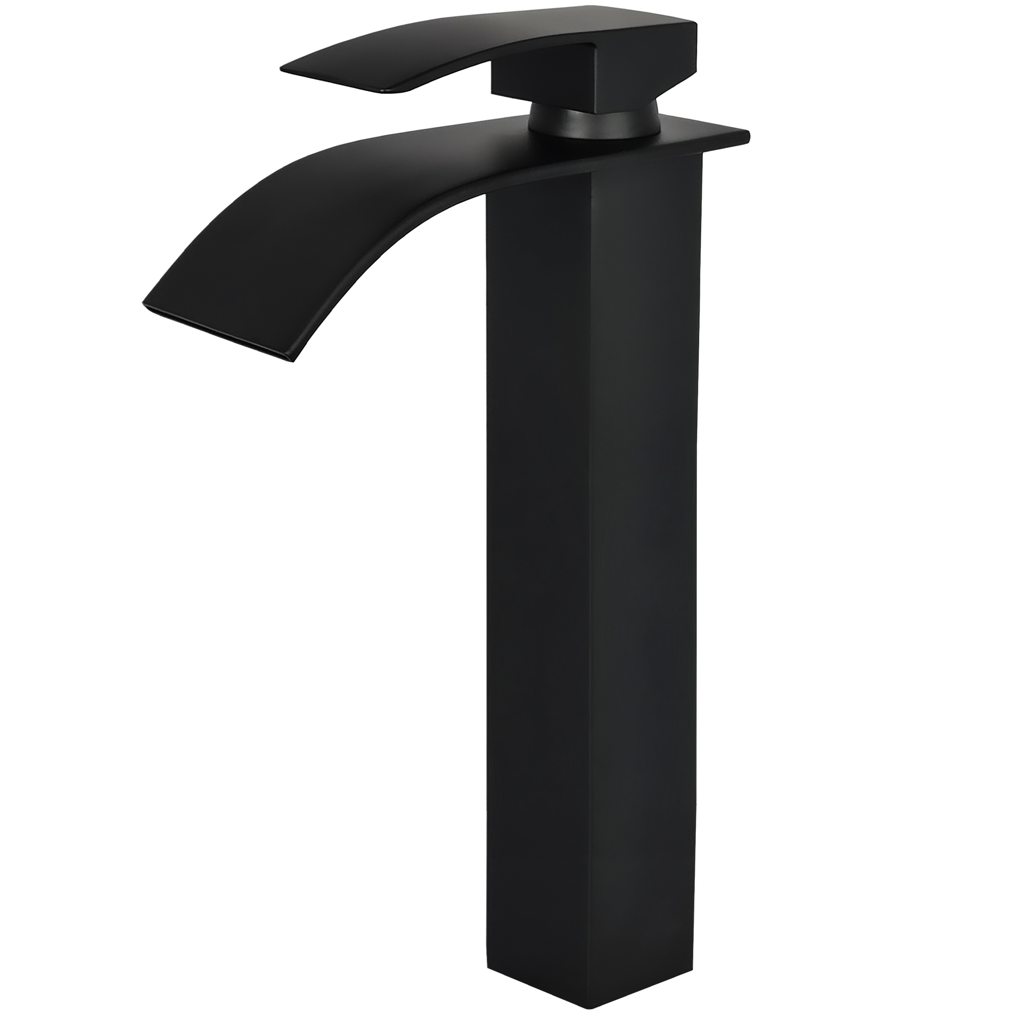 El grifo de lavabo alto para pica monomando en negro mate de la Serie Aljibe destaca por su diseńo moderno con efecto cascada. Ideal para lavabos tipo bol o sobre encimera, aporta un estilo elegante y contemporáneo a cualquier bańo. Su acabado negro mate lo convierte en una pieza sofisticada y muy combinable.
