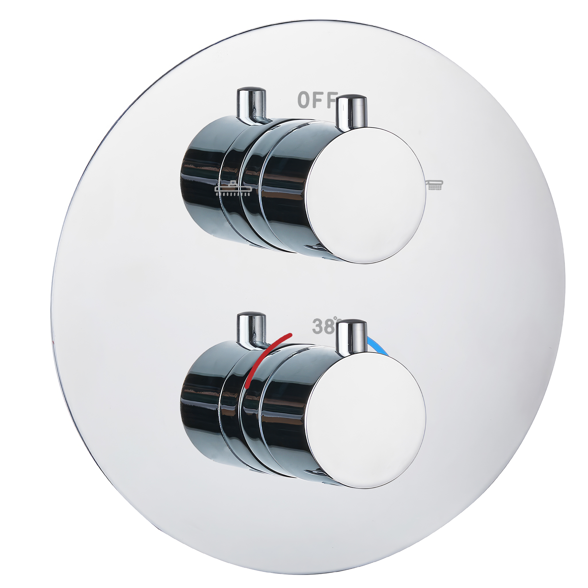 Este cuerpo empotrado termostático redondo de dos vías con acabado cromado es una opción ideal para aquellos que buscan un diseńo elegante y funcional en su bańo. Su diseńo compacto y su sistema de control de temperatura avanzado ofrecen una experiencia de ducha cómoda y precisa.