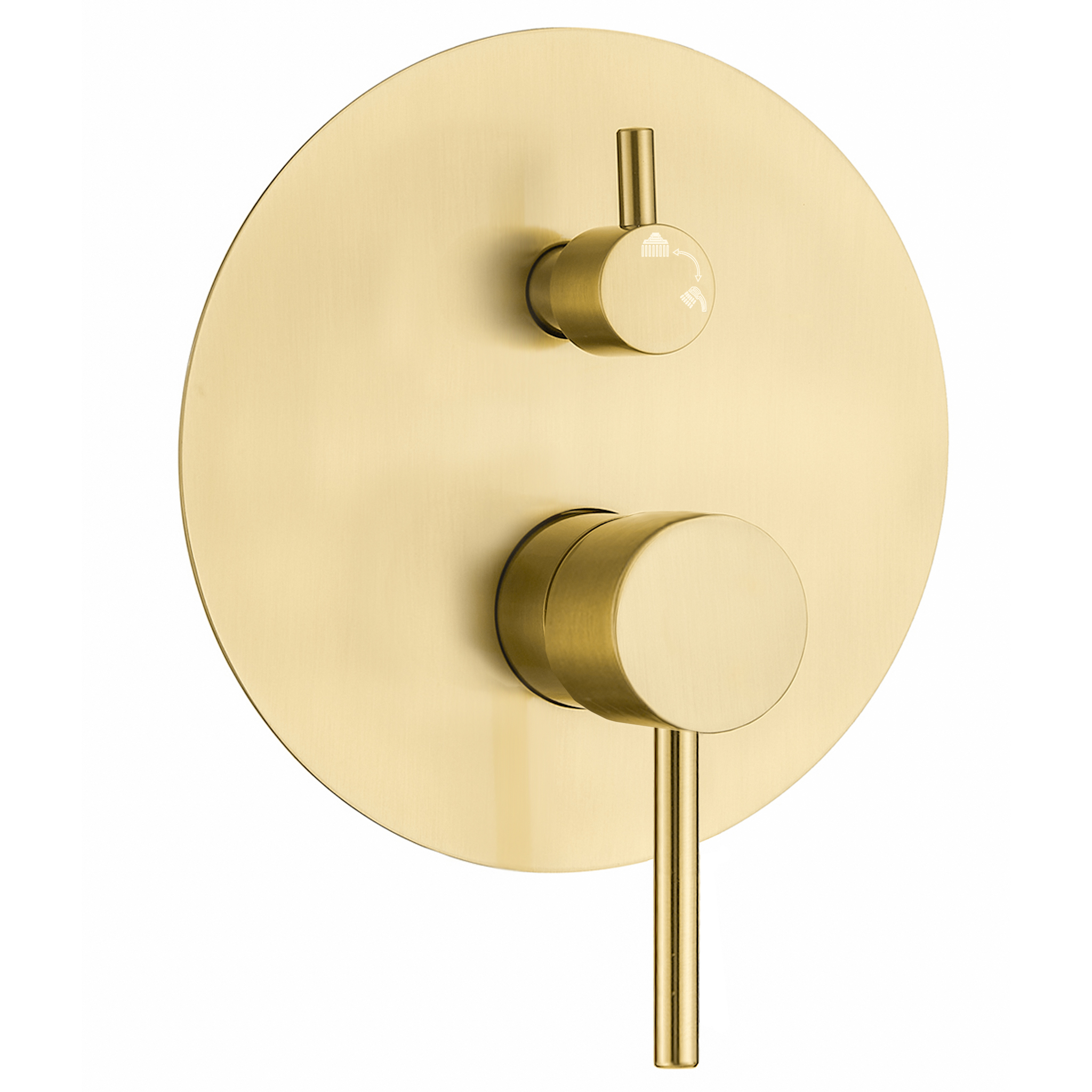 Este cuerpo empotrado monomando redondo de dos vías con acabado dorado cepillado ofrece una combinación perfecta de elegancia y funcionalidad. Su diseńo redondo y el acabado dorado cepillado aportan un toque de lujo y sofisticación a cualquier bańo, mientras que la tecnología monomando permite un control preciso y cómodo del agua.