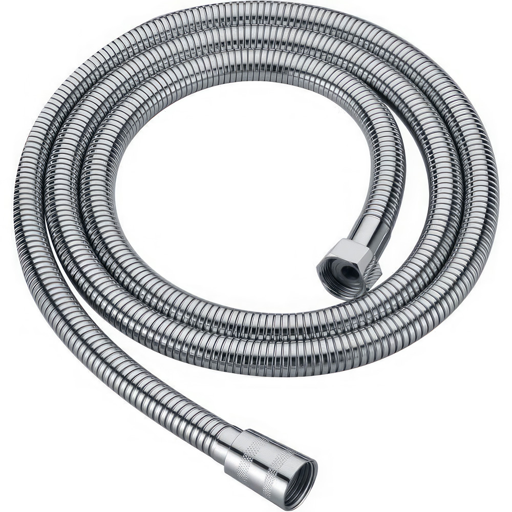 Este flexo de 150 cm fabricado en acero inoxidable con acabado cromado es una opción robusta, duradera y elegante para tu sistema de ducha o bańera. El acero inoxidable asegura una gran resistencia al desgaste y la corrosión, mientras que el acabado cromado le ańade un toque moderno y sofisticado.