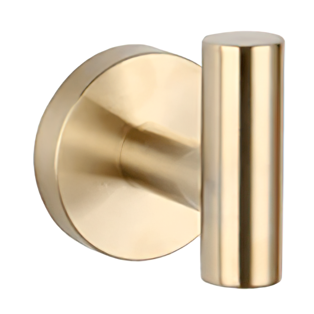 Ańade un toque de sofisticación a tu bańo con esta percha redonda en dorado cepillado. Su acabado elegante y su diseńo compacto la convierten en el complemento ideal para mantener tus prendas o toallas siempre a mano.