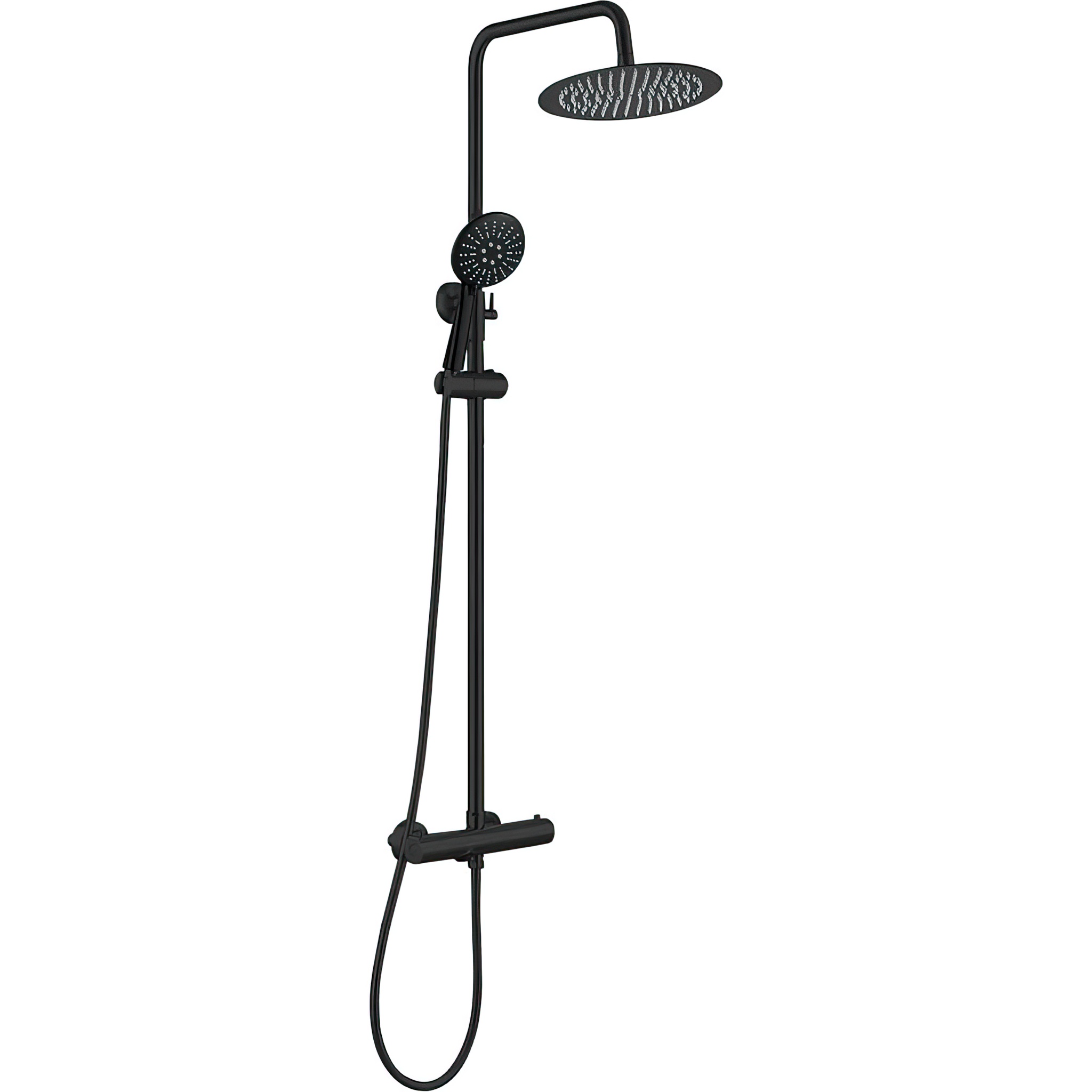 Barra de ducha/bańera termostática redonda ajustable hasta 150CM negro mate - Serie Ebro - 20cm