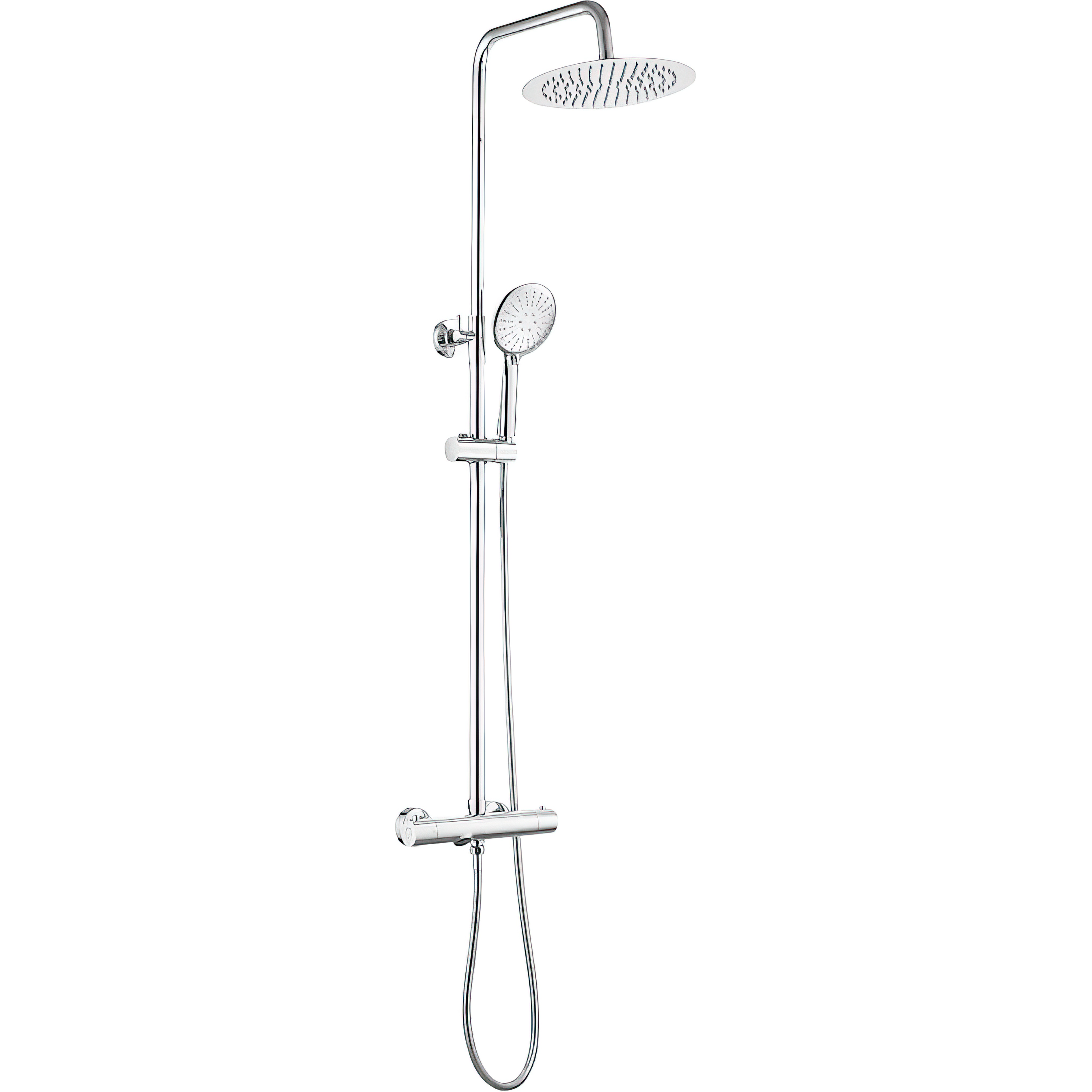 Barra de ducha/bańera termostática redonda ajustable hasta 150CM cromada - Serie Ebro - 20cm