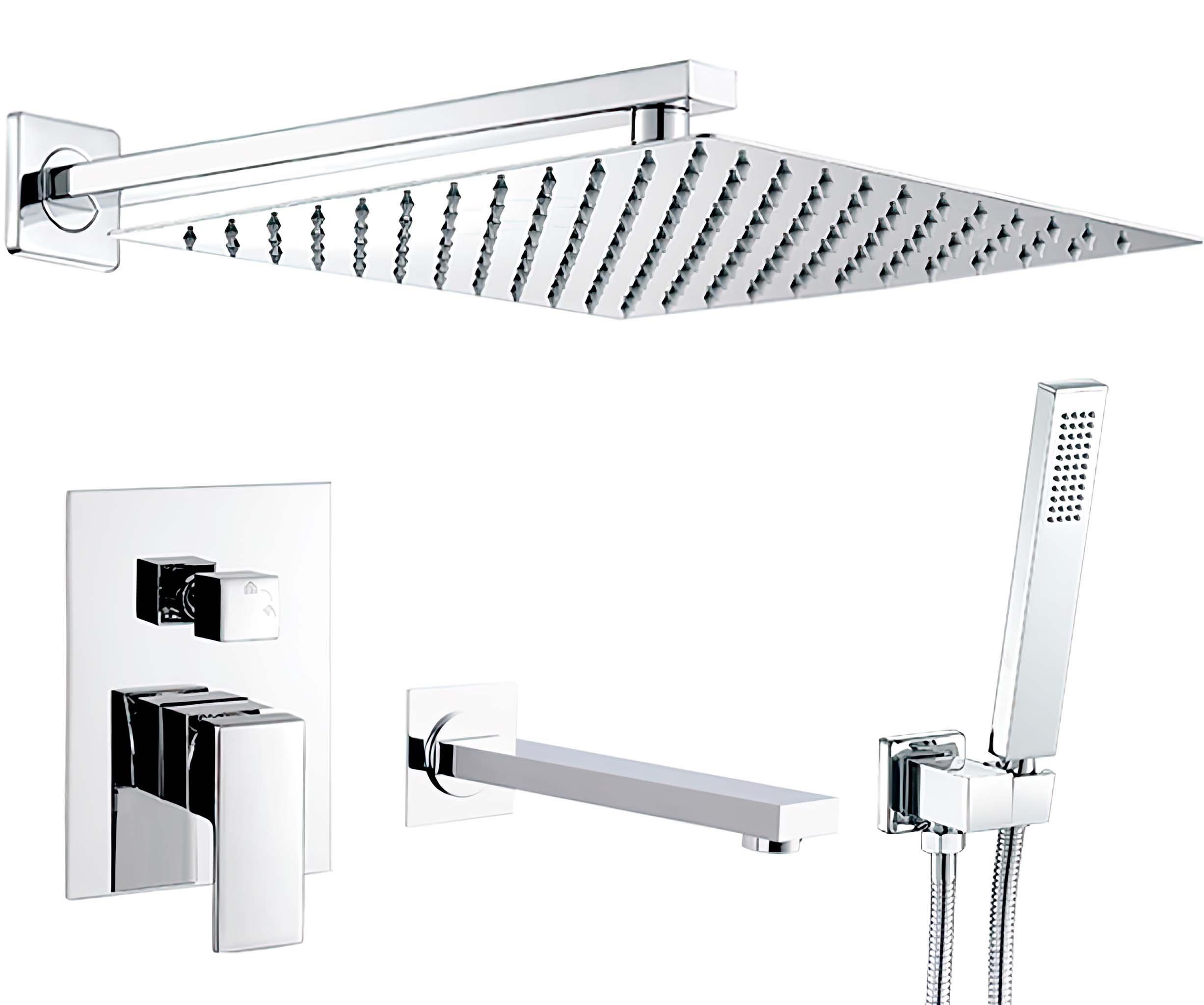 Sistema de ducha empotrada diseńado para bańera, con líneas limpias y acabados cromados. Incorpora un rociador de efecto lluvia, alcachofa de mano y cańo de bańera, ofreciendo una experiencia completa y funcional en el bańo. Su diseńo moderno encaja perfectamente en cualquier estilo de decoración. Especificaciones Tipo de instalación: empotrada a pared Acabado: cromado Monomando: 3 vías (rociador, alcachofa de mano, cańo de bańera) Tamańos de rociador disponibles: 20x20, 25x25, 30x30, 40x40 cm Rociador: acero inoxidable Monomando: latón Alcachofa de mano: latón Cańo de bańera: latón cromado Flexo: acero inoxidable de 150 cm Incluye caja box empotrable Funciones Rociador efecto lluvia Alcachofa de mano Cańo de bańera