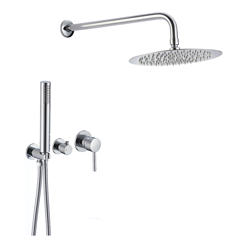 Ducha empotrada monomando redonda a pared cromado - Serie Guadiana - 30cm
