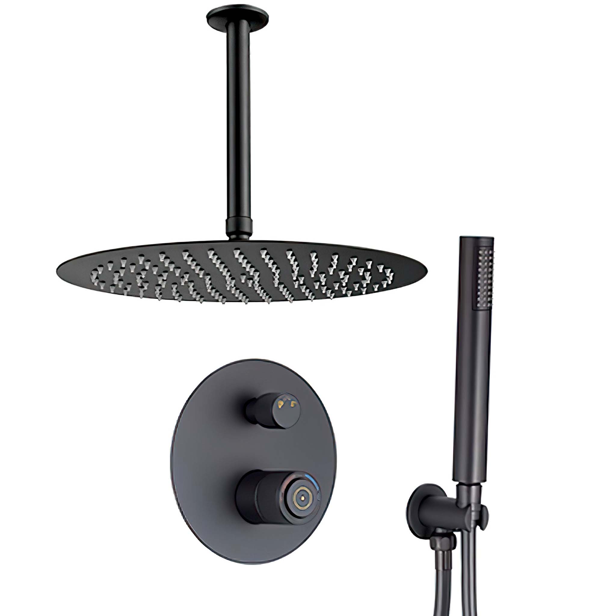 Ducha empotrada monomando con botón redonda a techo negro mate - Serie Andarax - 25cm