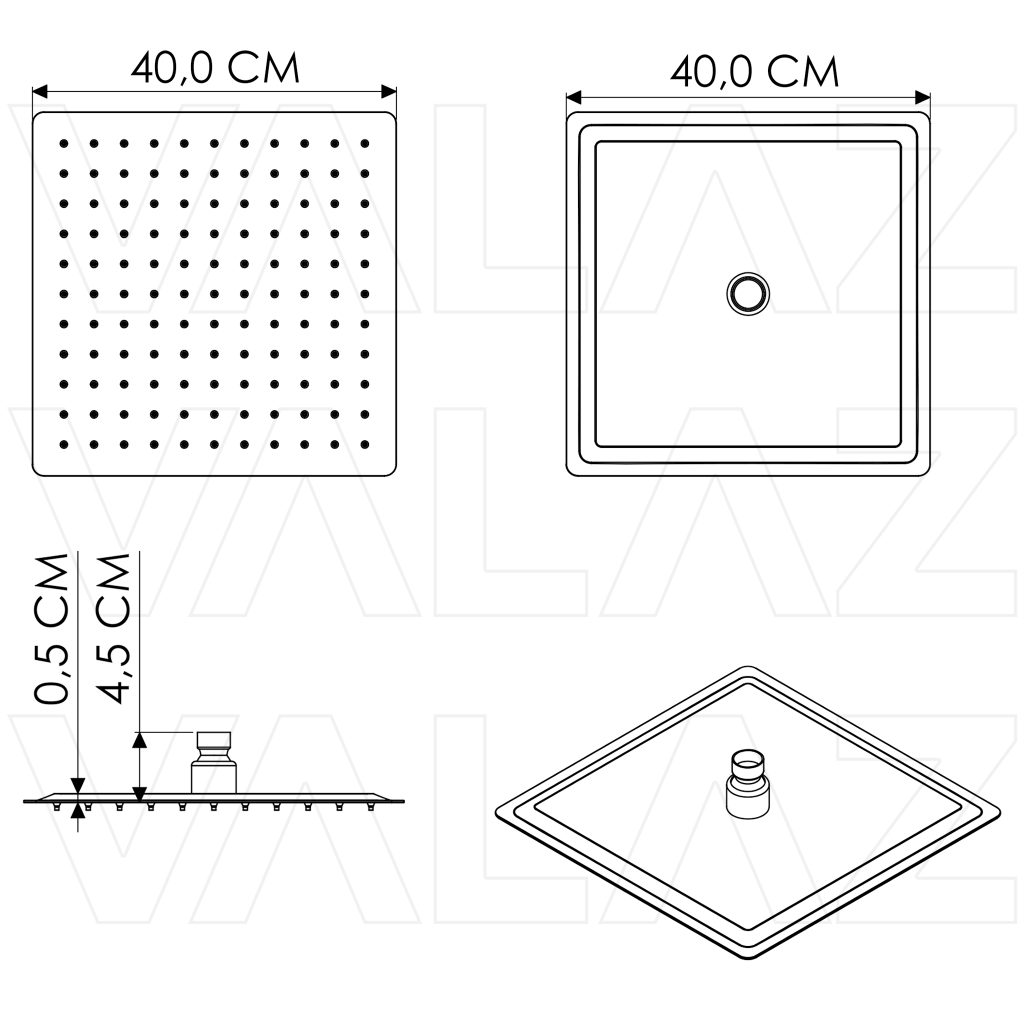 Tipo: Rociador de ducha cuadrado